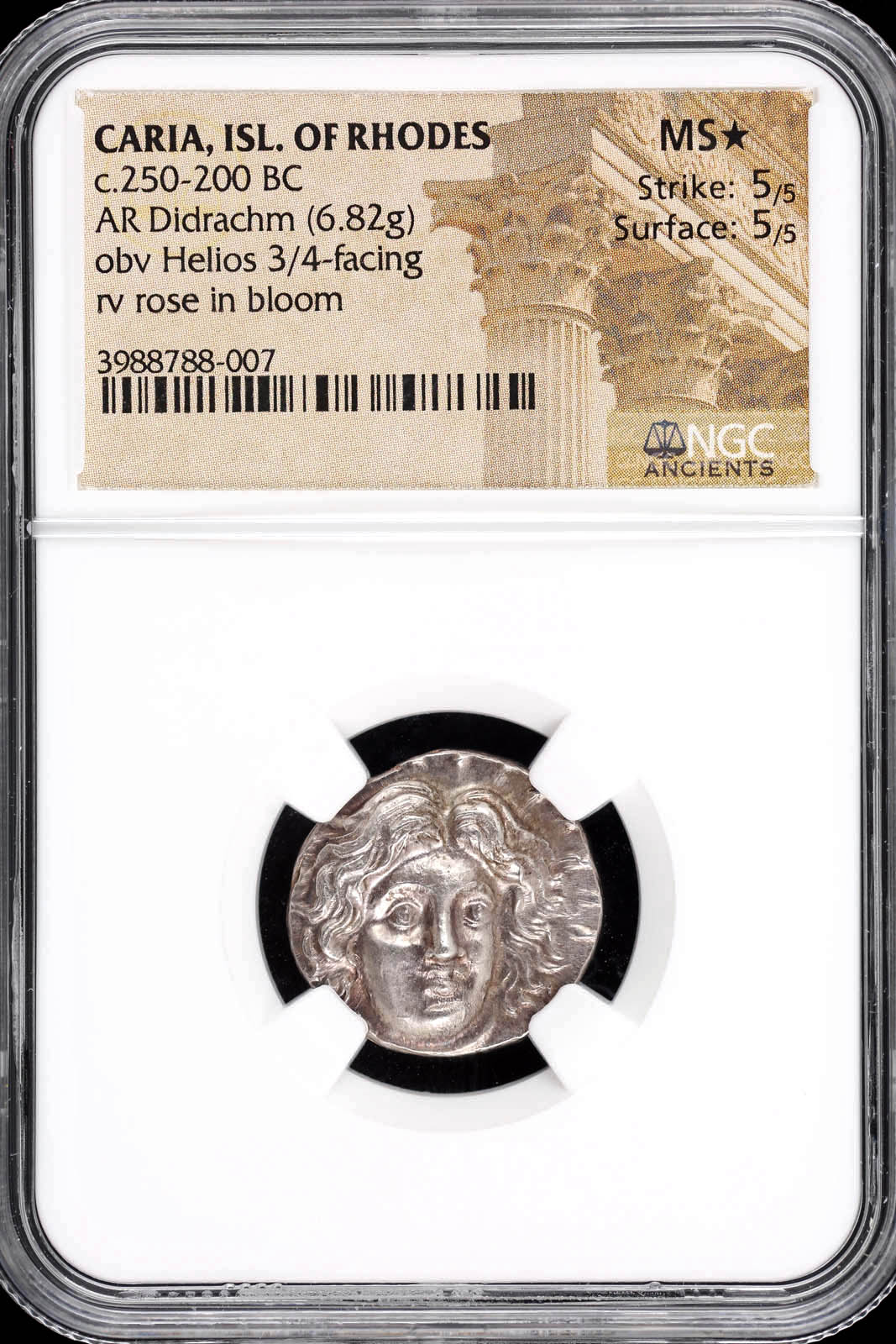 Greek , Islands Off Caria, Rhodes c.250-200 BC AR Drachma NGC MS* 33676