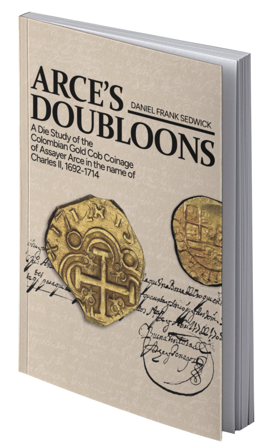 This landmark work examines hundreds of examples to chronologically sequence the dies used to make 2 escudos gold coins (“doubloons”) at the Bogotá mint in 1692-1714, during the tenure of assayer Buenaventura de Arce Penagos, all in the name of Charles II of Spain, whose death in 1700 marked the beginning of the War of the Spanish Succession and an increase in Caribbean piracy.