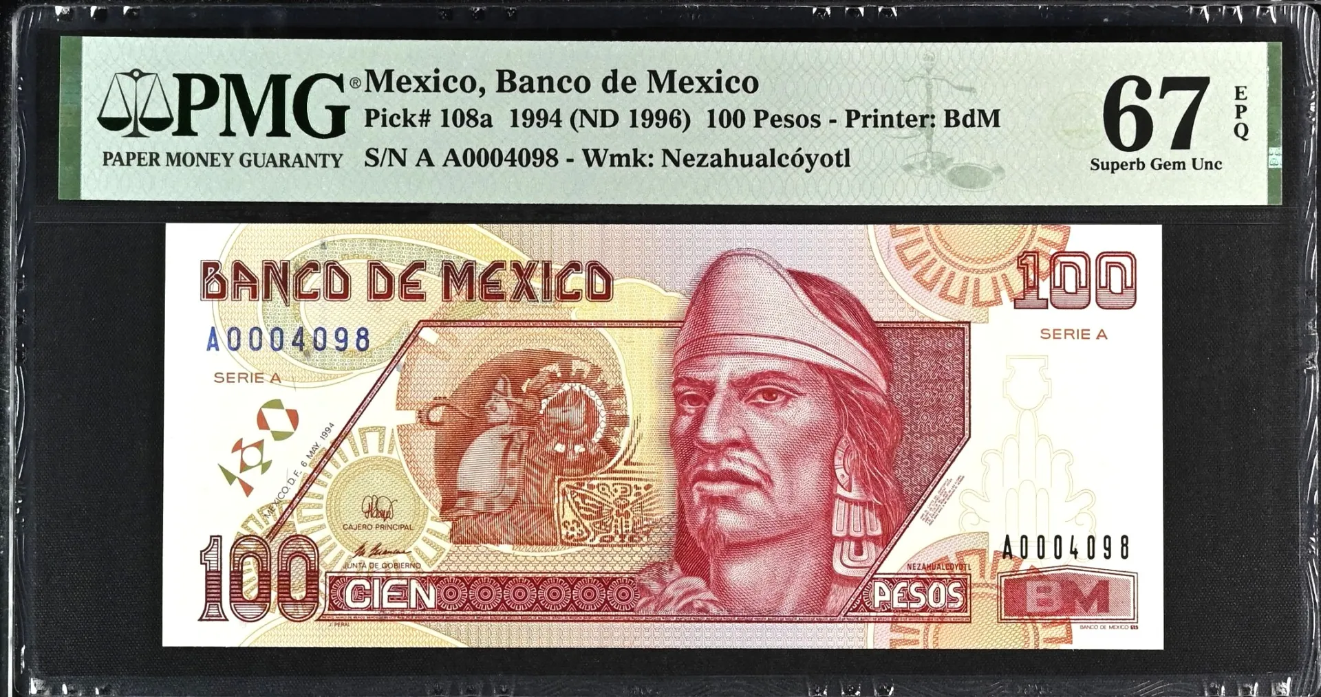 Banco De Mexico 100 Pesos 1994 Pick #108a PMG Superb Gem UNC67 EPQ f_35647