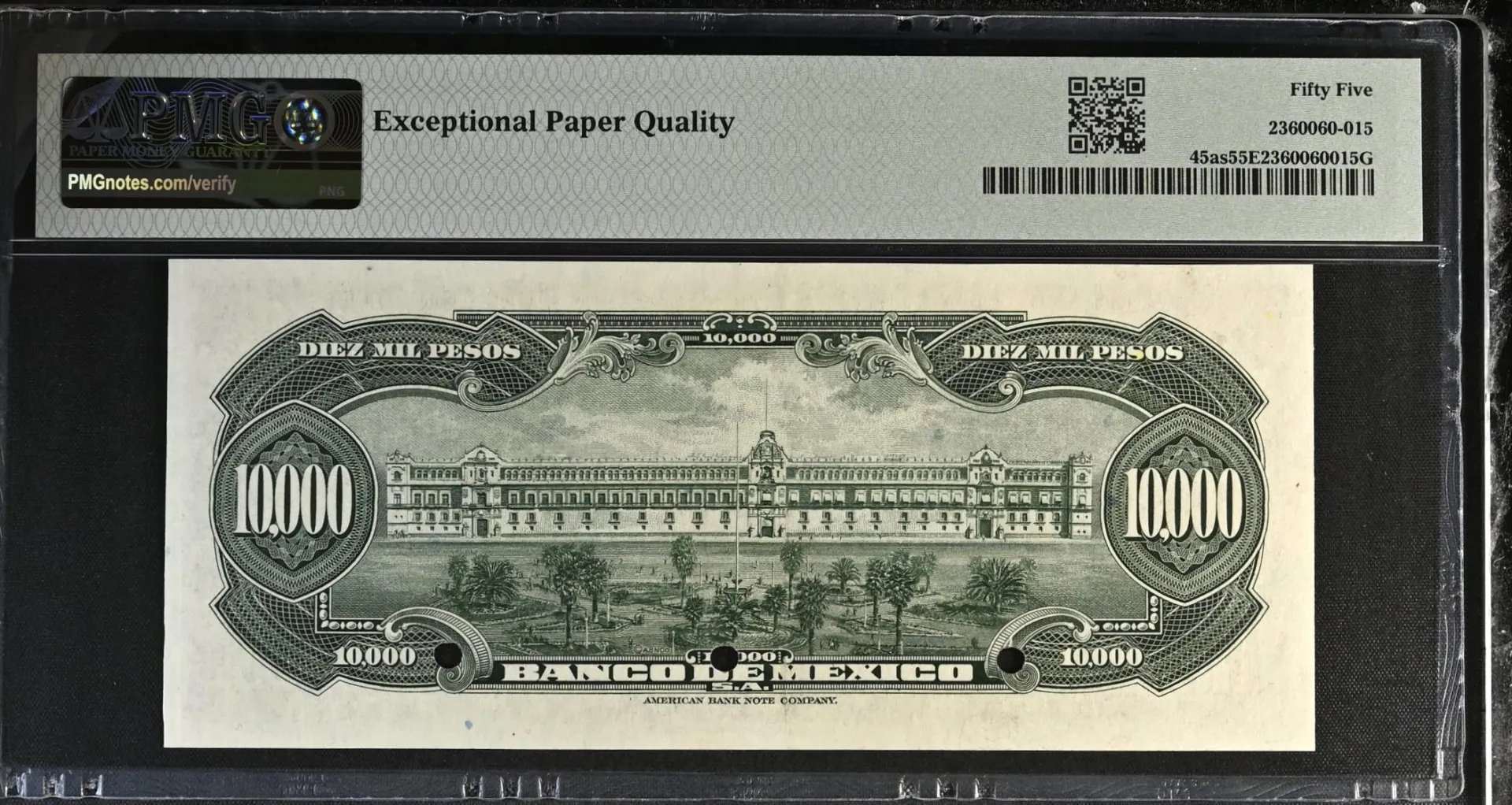 Banco De Mexico 10,000 Pesos (1943) Rare Date M4644As1 P 45as PMG AU55 EPQ f_35617