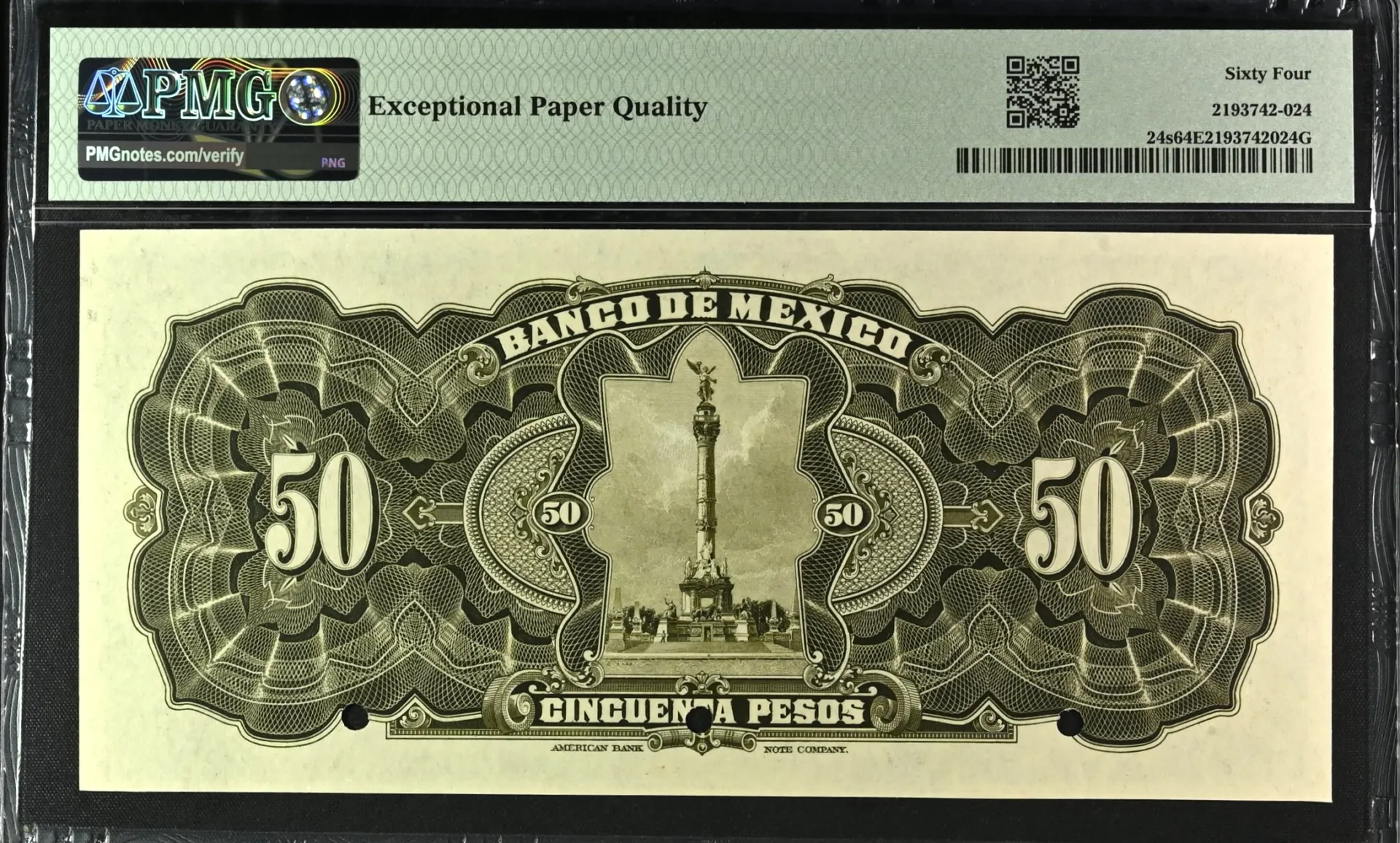 Banco De Mexico 50 Pesos ND M4618s P 24s PMG Ch UNC64 EPQ f_35614