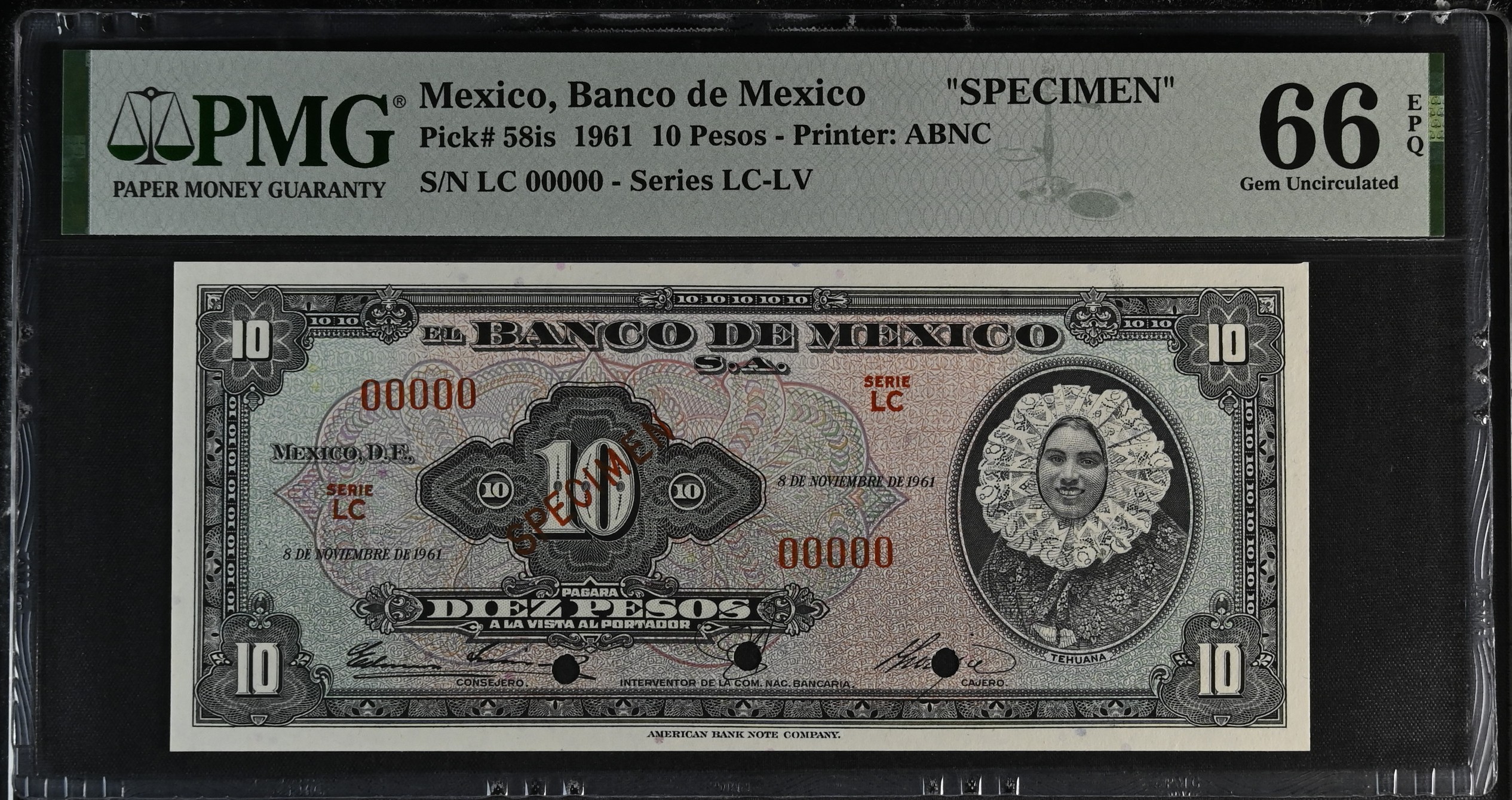 Banco De Mexico 8 Piece Specimen Set all Graded Pick #49/51/52/54/57/58/59/61 PMG Gem UNC66 EPQ f_35464