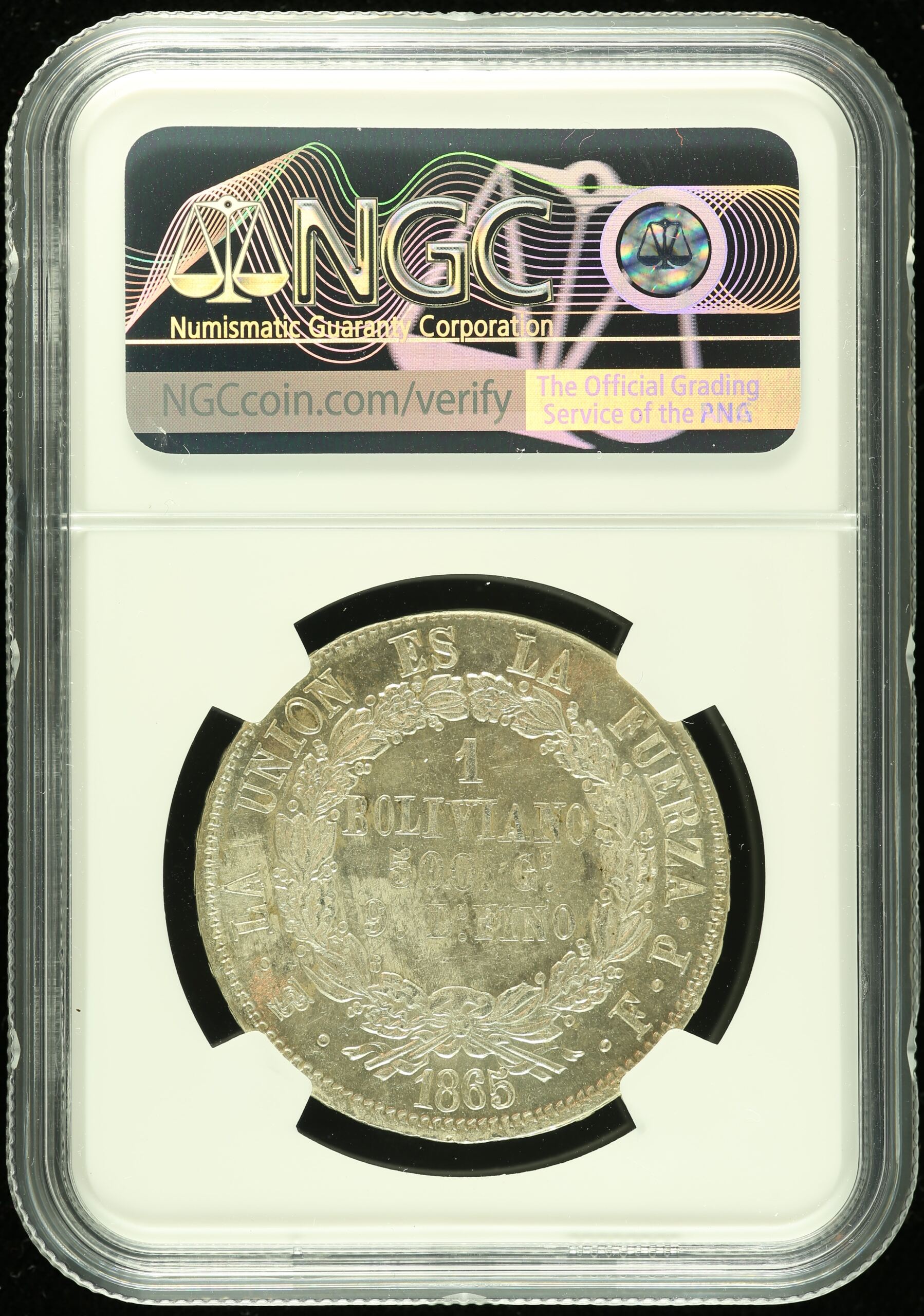 Bolivia Boliviano 1865 Pts FP NGC MS63+ 0112731