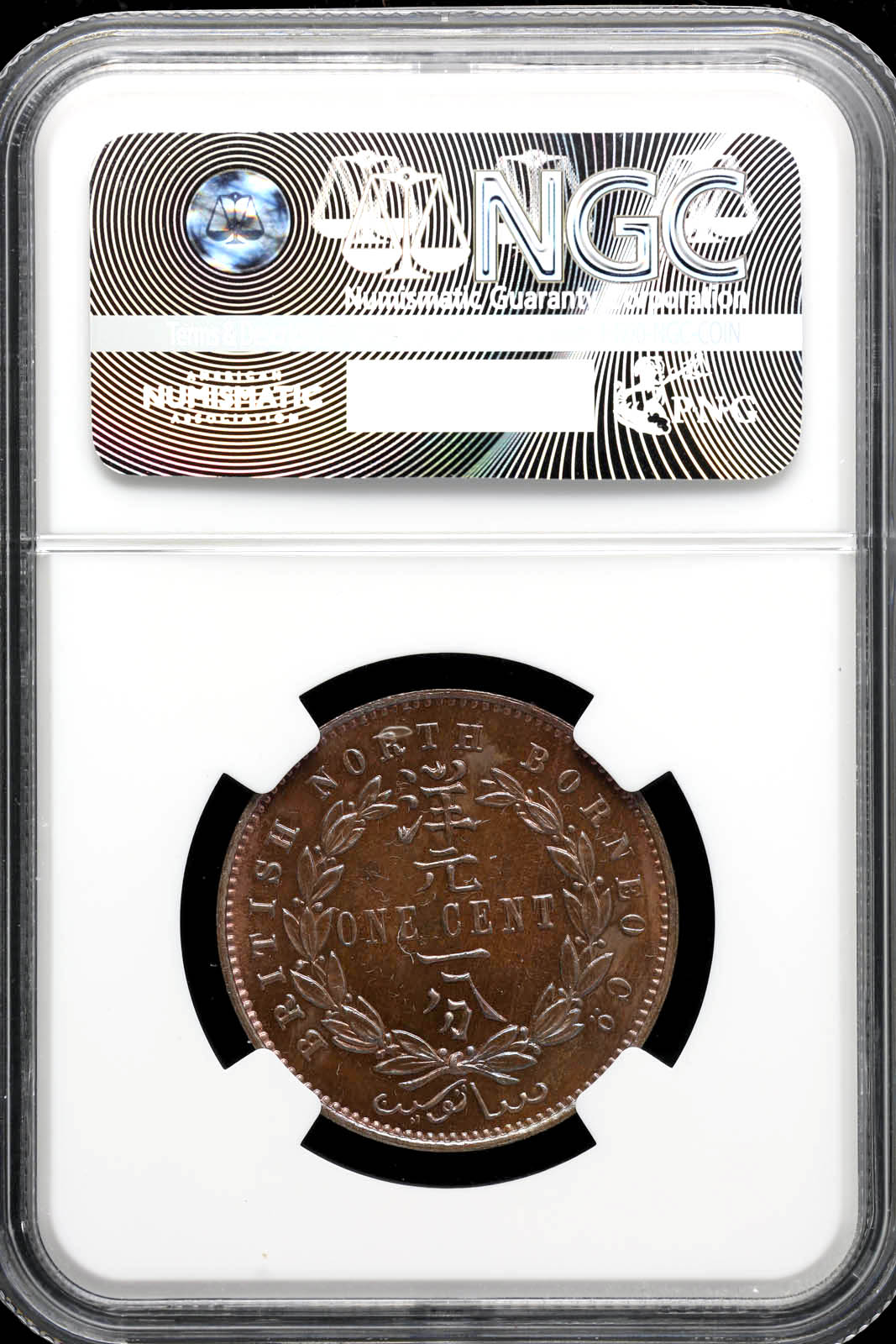 British North Borneo One Cent 1890 H NGC SP65RB KM2 34457