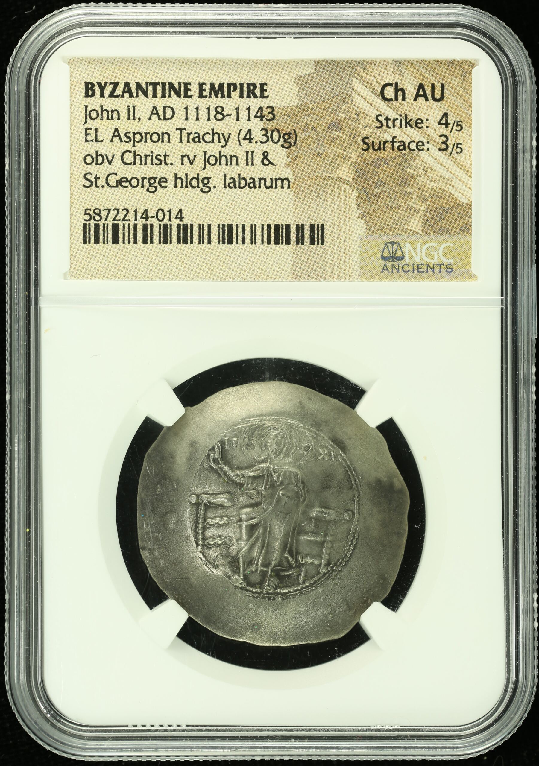 Byzantine John II 1118-1143 AD EL Aspron Trachy NGC Ch AU 0123942