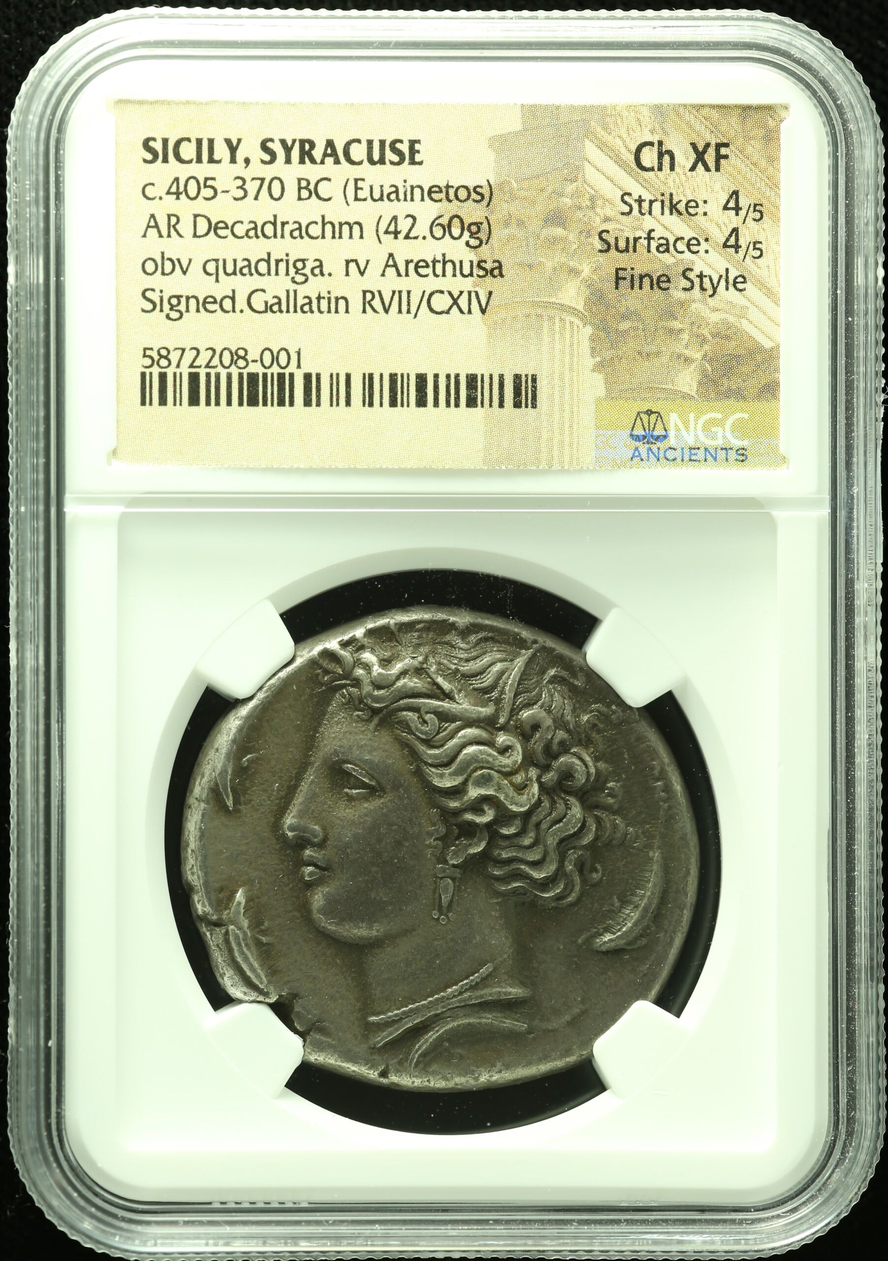 Sicily Syracuse c.405-370 BC AR Decadrachm NGC Ch XF 0110188