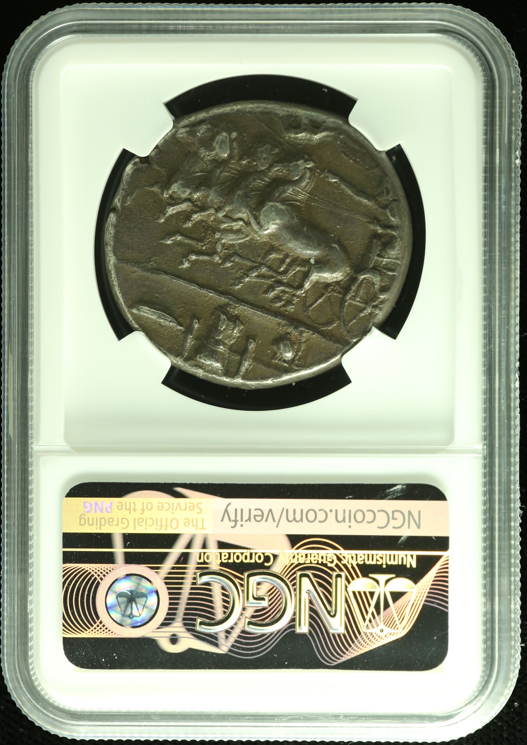 City: TarasDate: c.302-280 BCDenom: DidrachmMetal: ARWeight: (7.93g)Grade: NGC AUGrading Strike: 4/5Grading Surface: 4/5 -