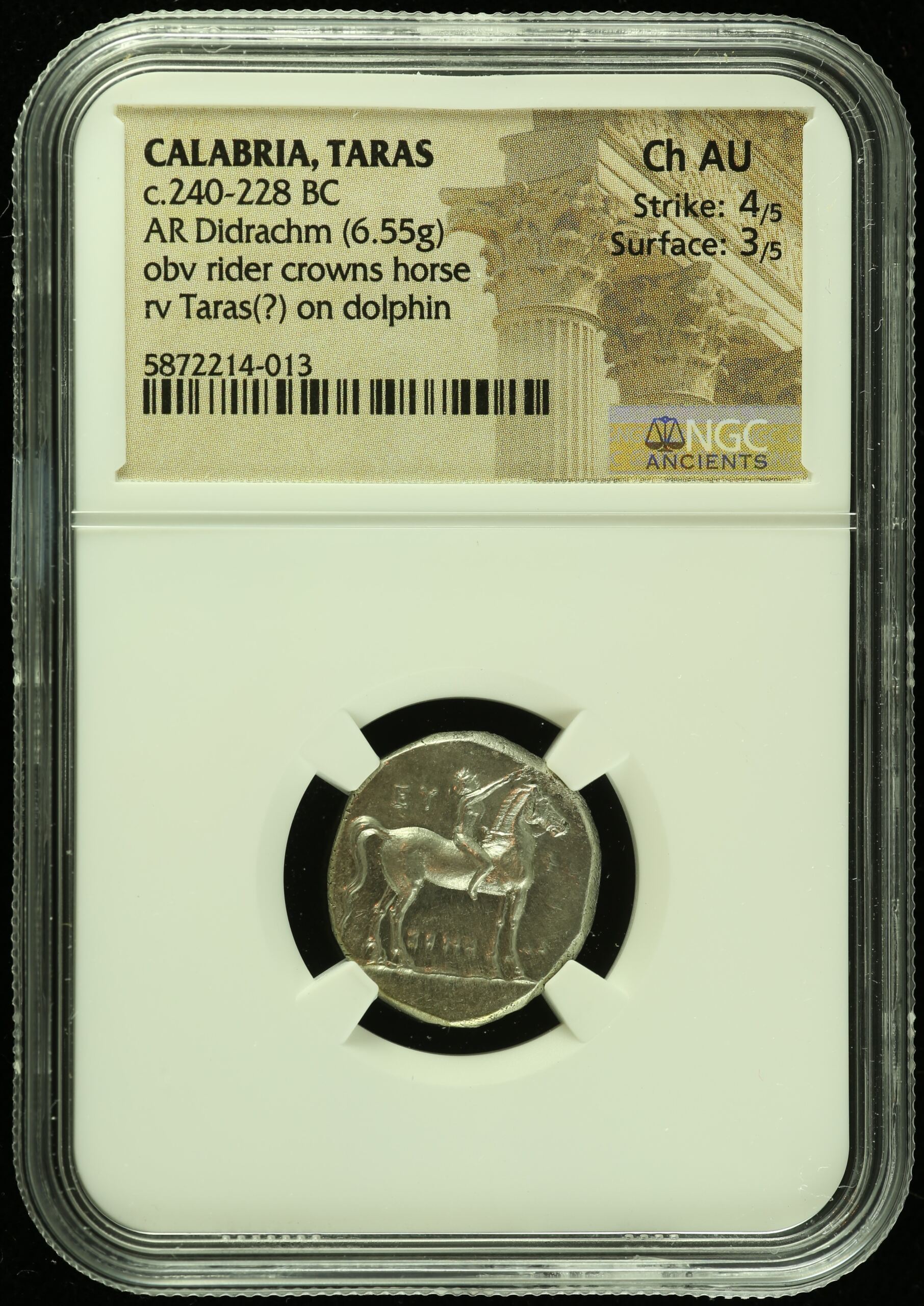 Calabria Taras c.240-228 BC AR Didrachm NGC Ch AU 0110361