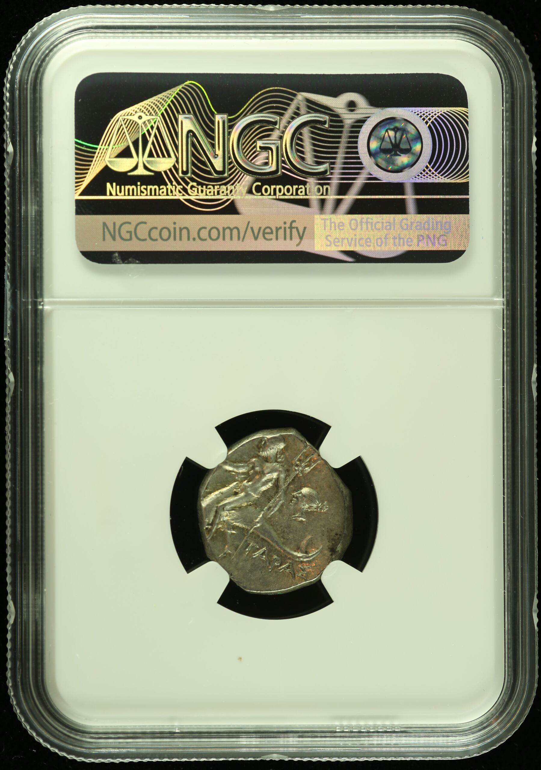 City: TarasDate: c.302-280 BCDenom: DidrachmMetal: ARWeight: (7.95g)Grade: NGC Ch XFGrading Strike: 4/5Grading Surface: 3/5 -