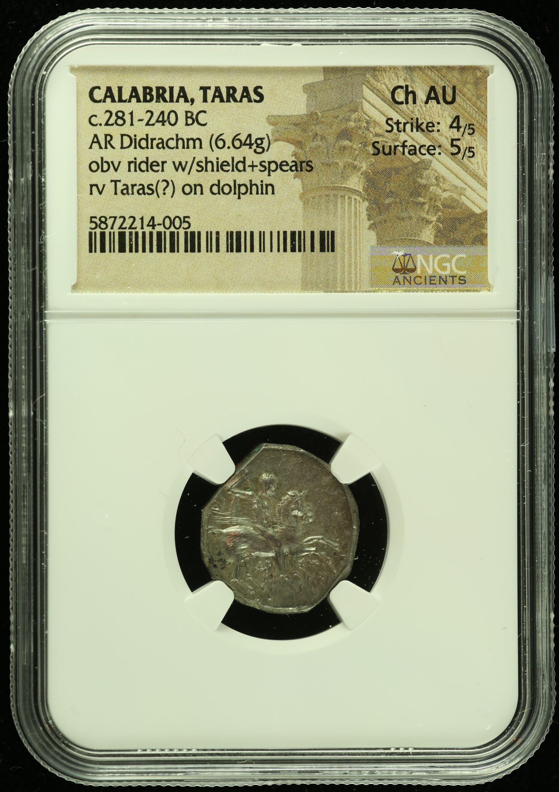 Calabria Taras c.281-240 BC AR Didrachm NGC Ch AU 0110364