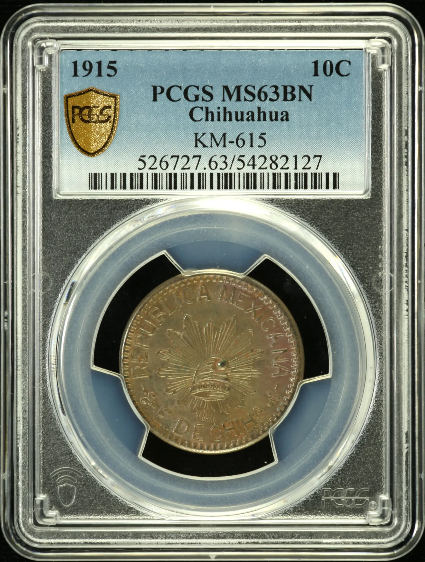 Chihuahua 10 Centavo 1915 Chihuahua KM-615 PCGS MS63BN 0158197