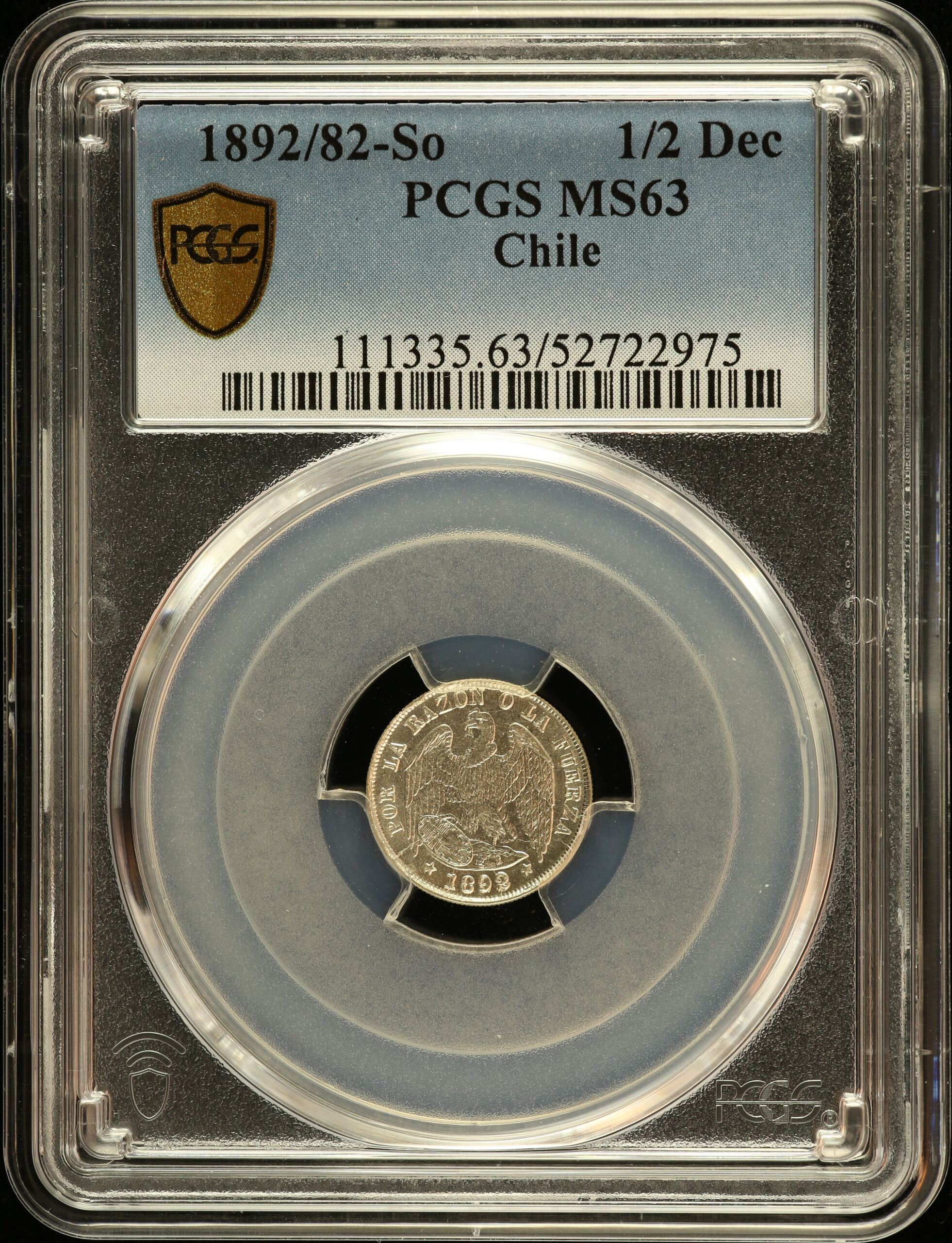 Chile 1/2 Decimo 1892/82 So PCGS MS63 0151149