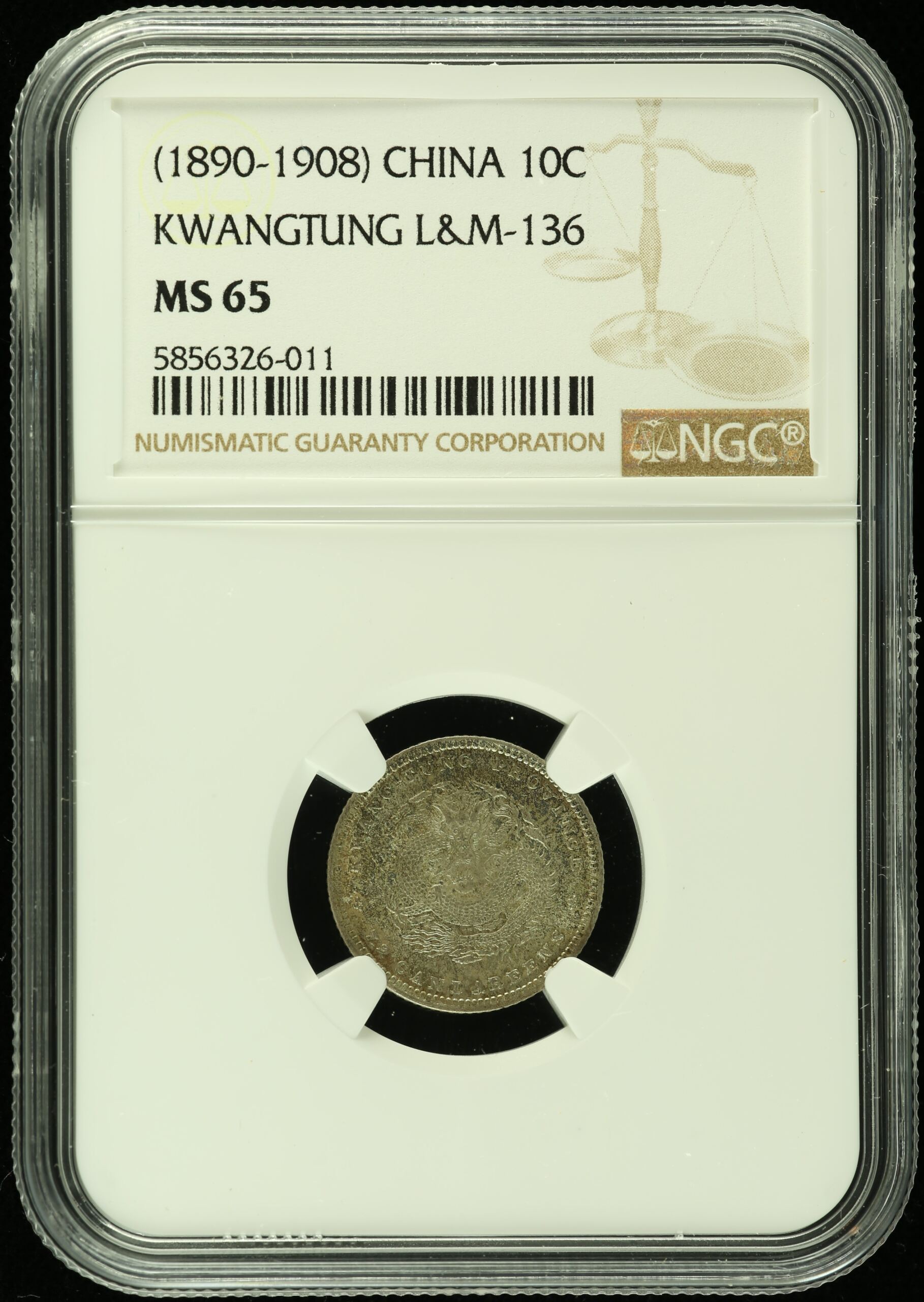 China 10 Cents (1890-1908) Kwangtung NGC MS65 0112827