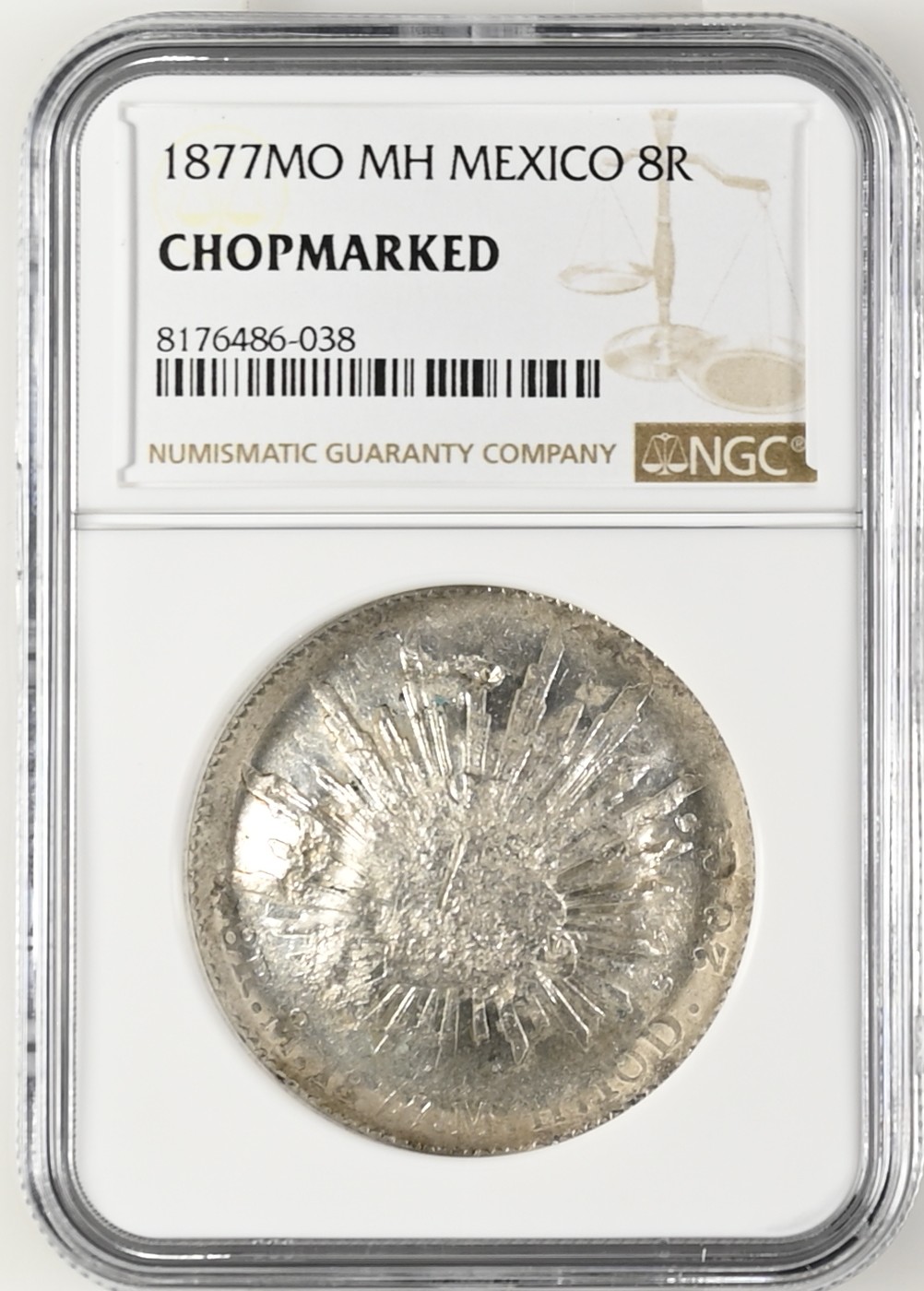 Chopmarked 8 Reales 1877 Mo MH NGC CHOPMARKED 0142257