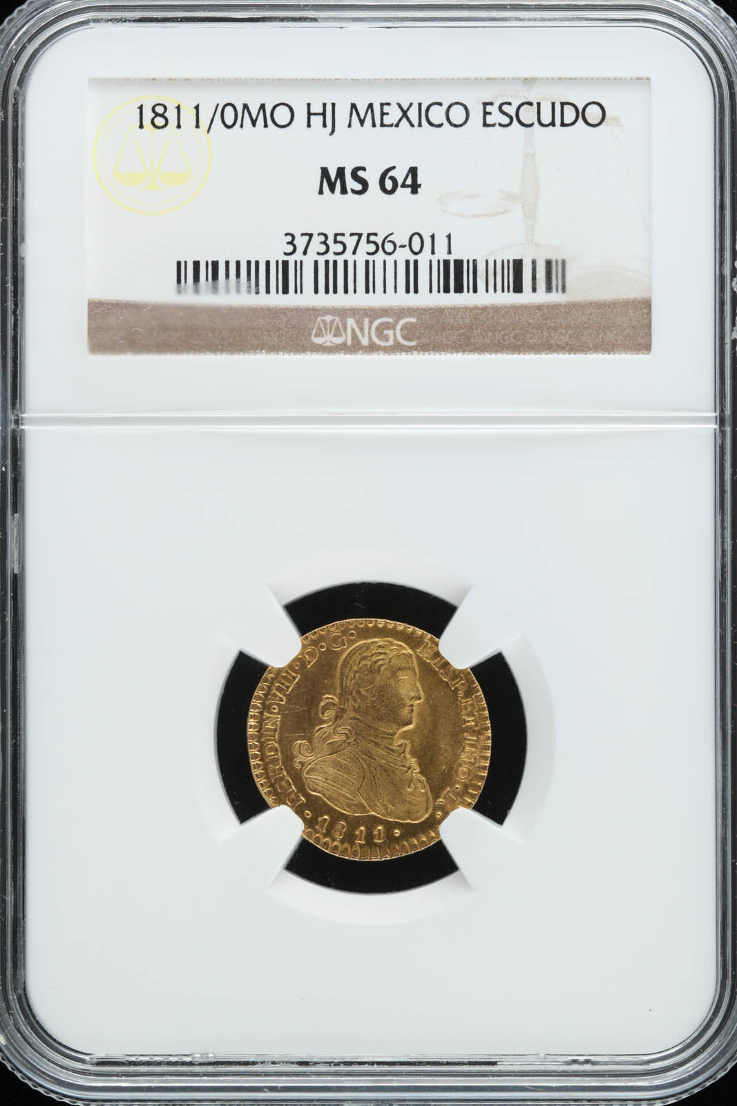 Colonial Gold 1 Escudo 1811/0 Mo HJ NGC MS64 KM121 28354