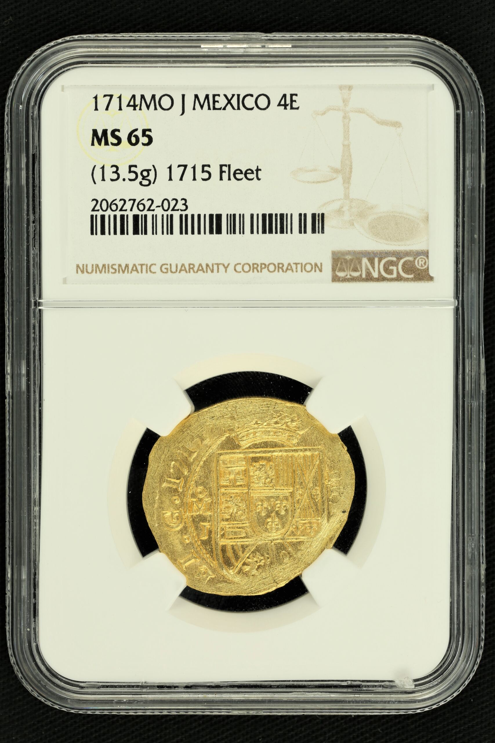 Mexico Philip V gold cob 4 Escudos 1714 Mo-J MS65 NGC 36350