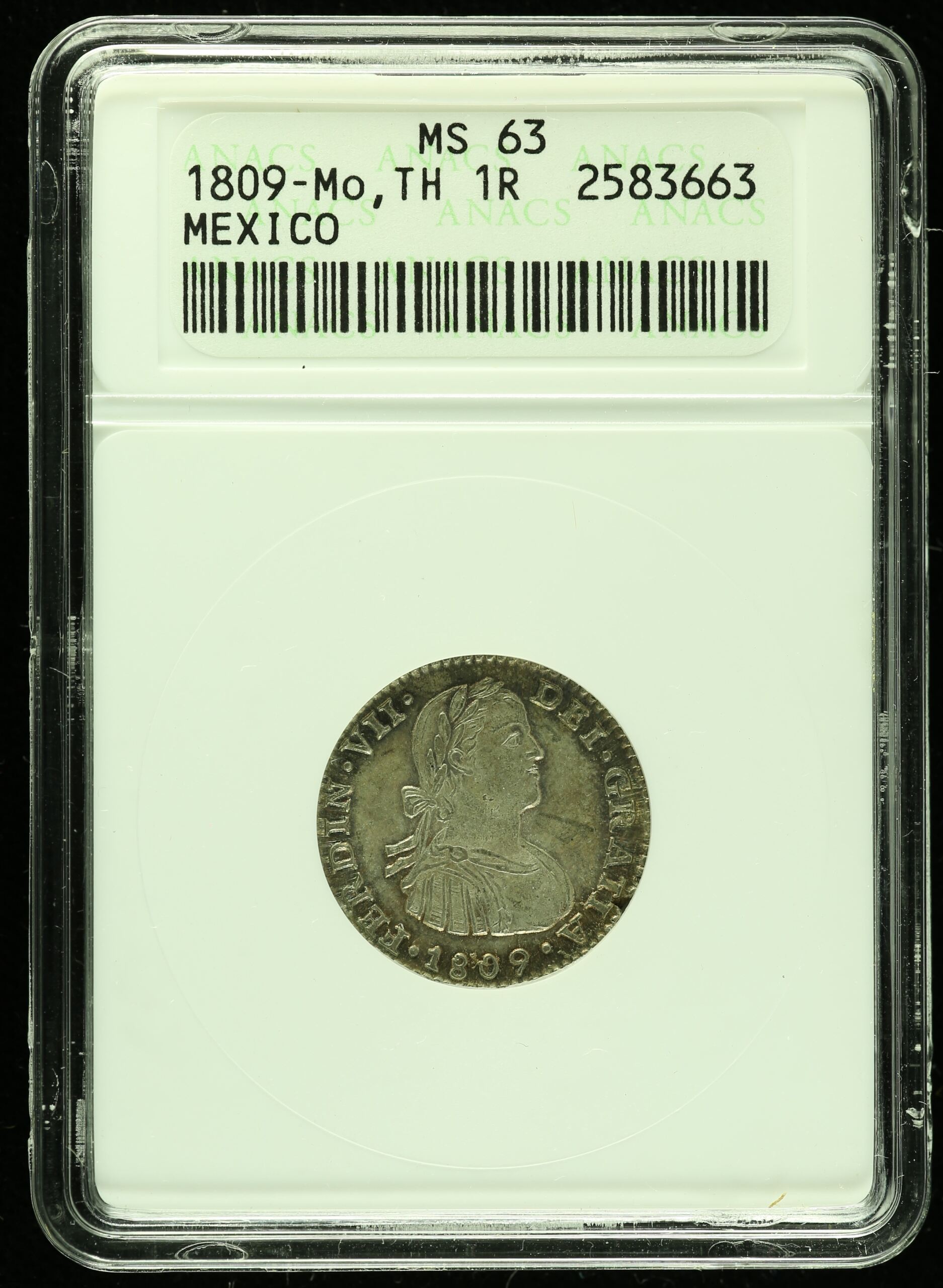 Colonial Silver & Minors Real 1809 Mo TH ANACS MS63 k_35418