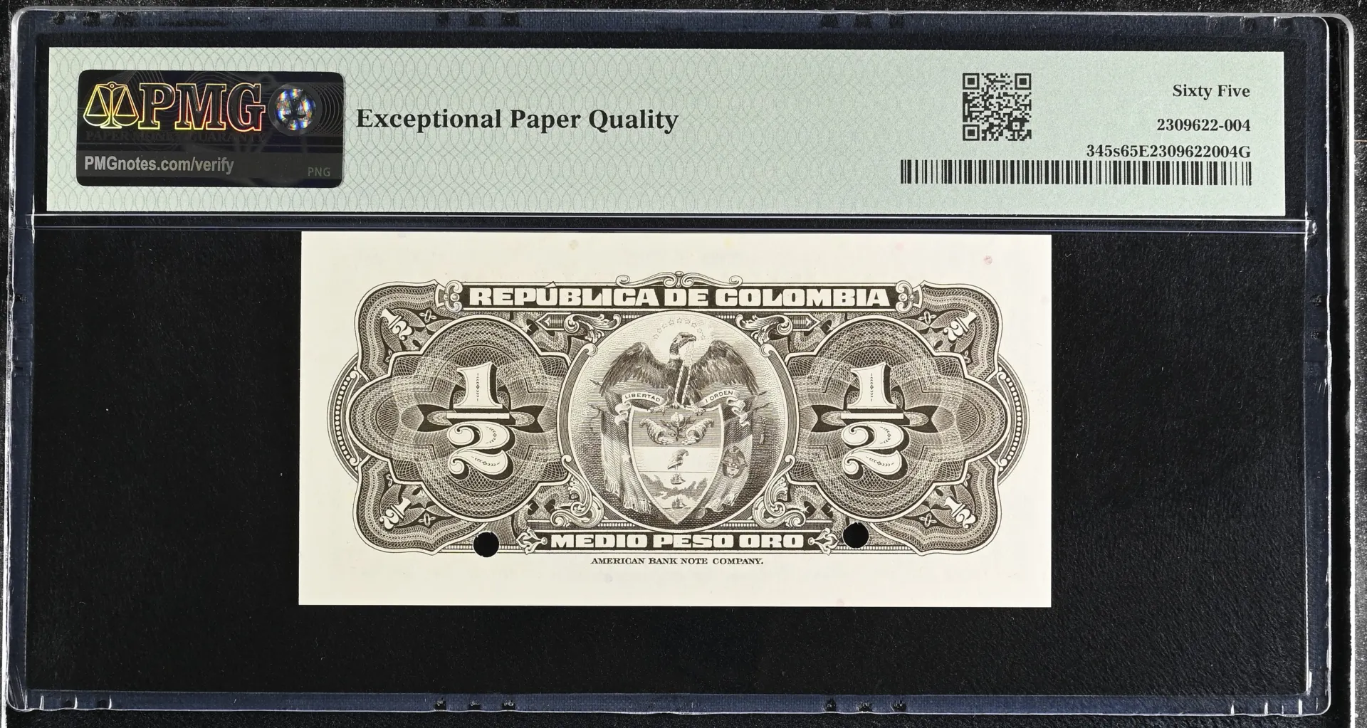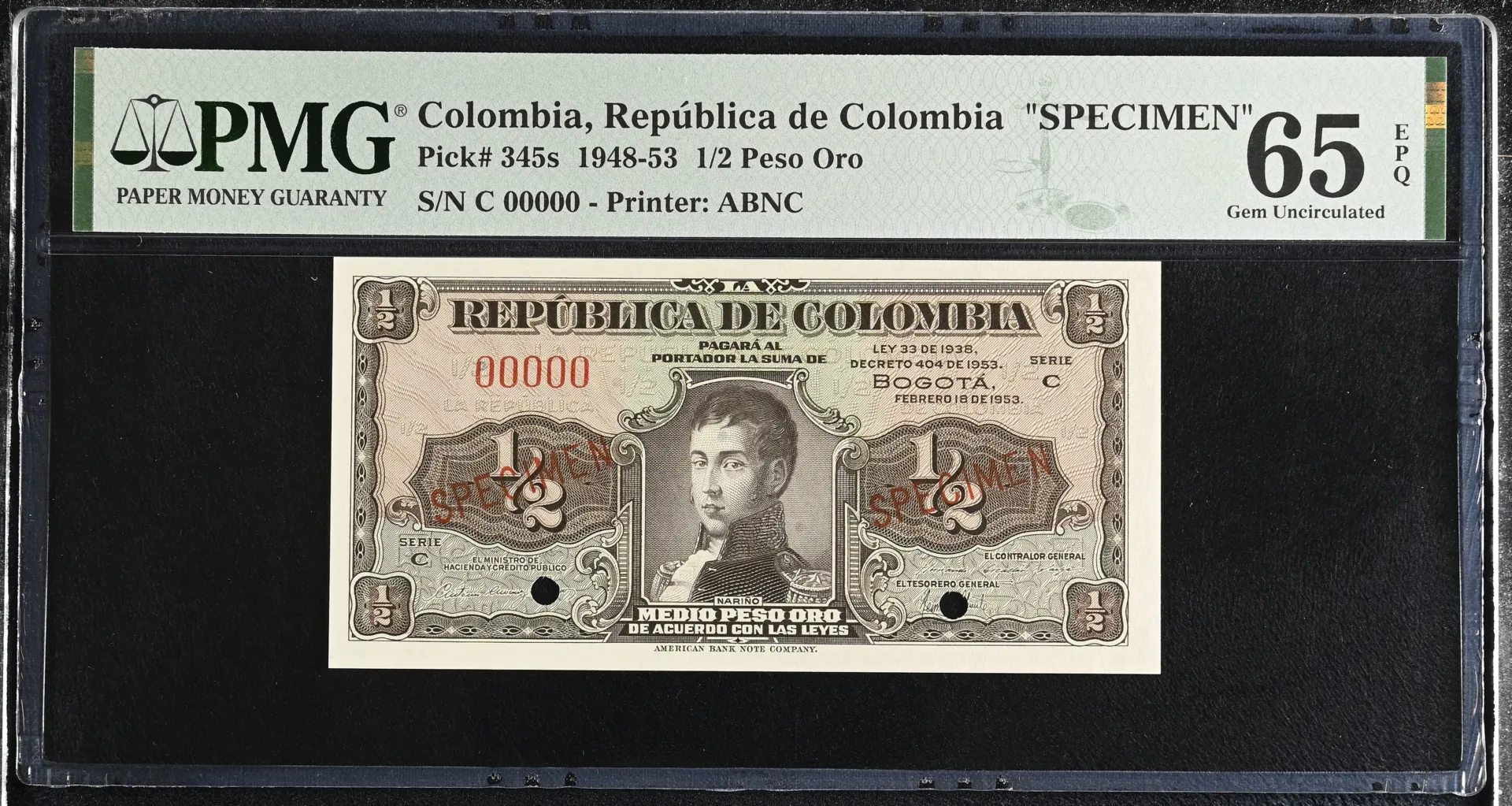 Colombia 1/2 Peso Oro 1953 PMG Gem UNC65 EPQ Pick #345s 0152328