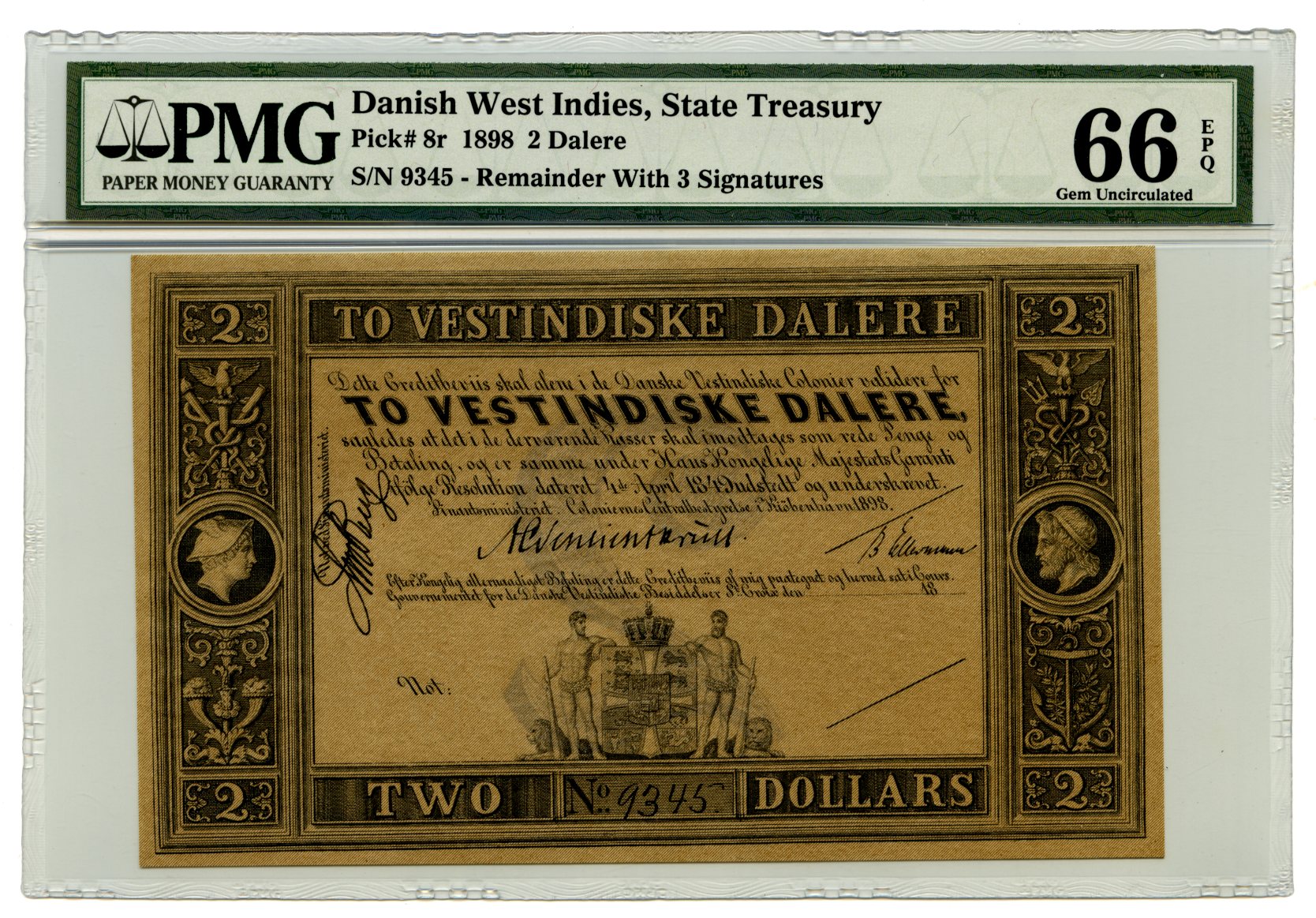 Danish West Indies 2 Dalere 1898 PMG 66 EPQ P8r 33106