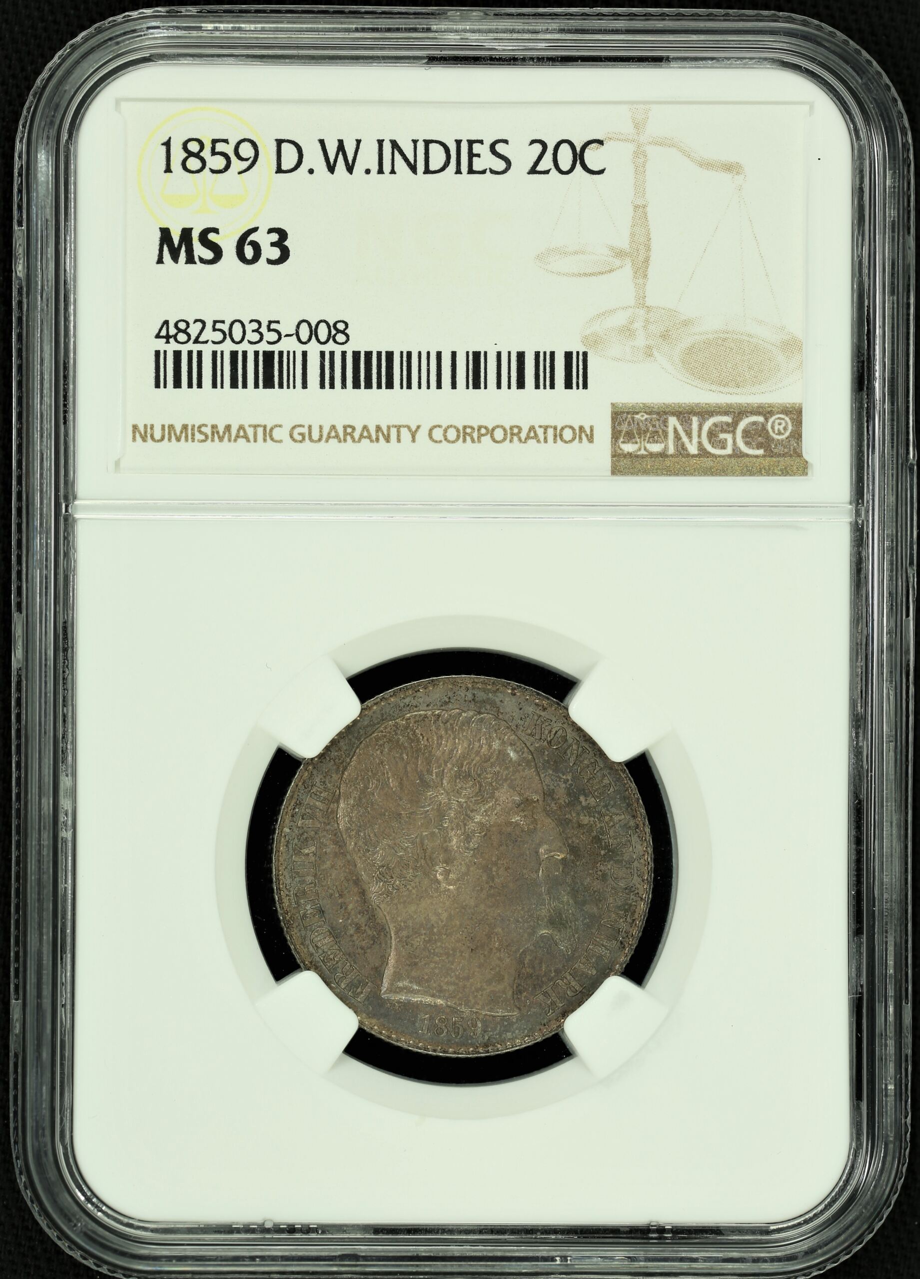 Danish West Indies 20 Cents 1859 NGC MS63 0047855
