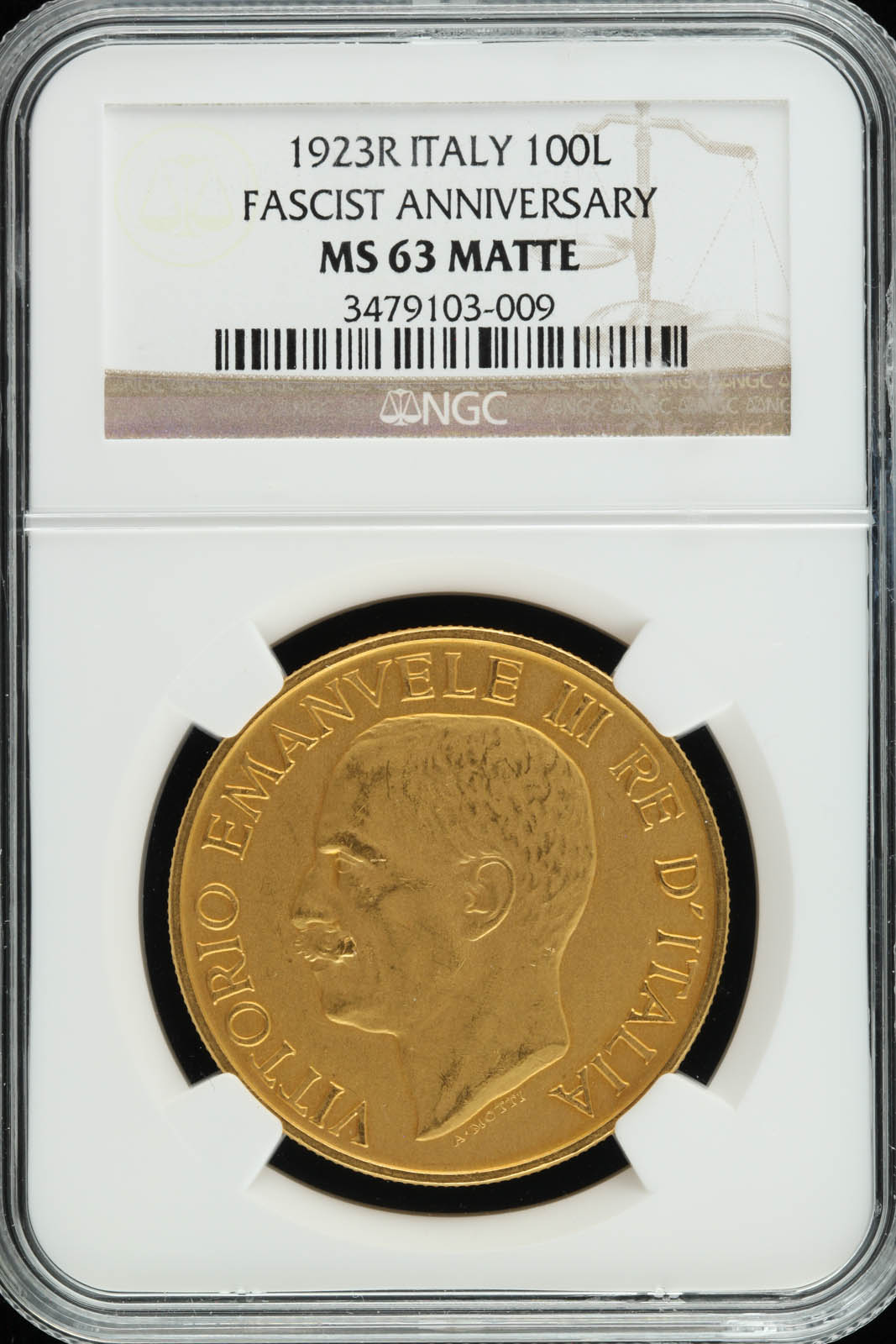 Italy 100 Lire 1923 R NGC MS63 MATTE KM65 29329