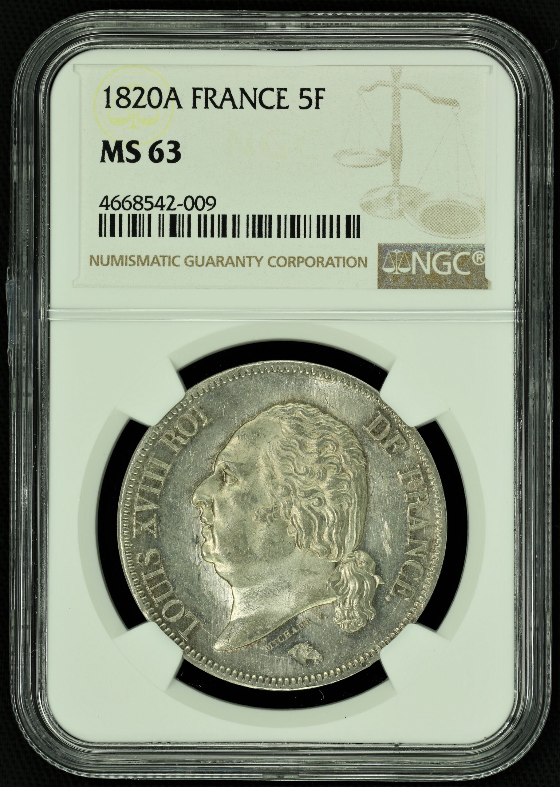 Europe France 5 Francs 1820 A NGC MS63 43551