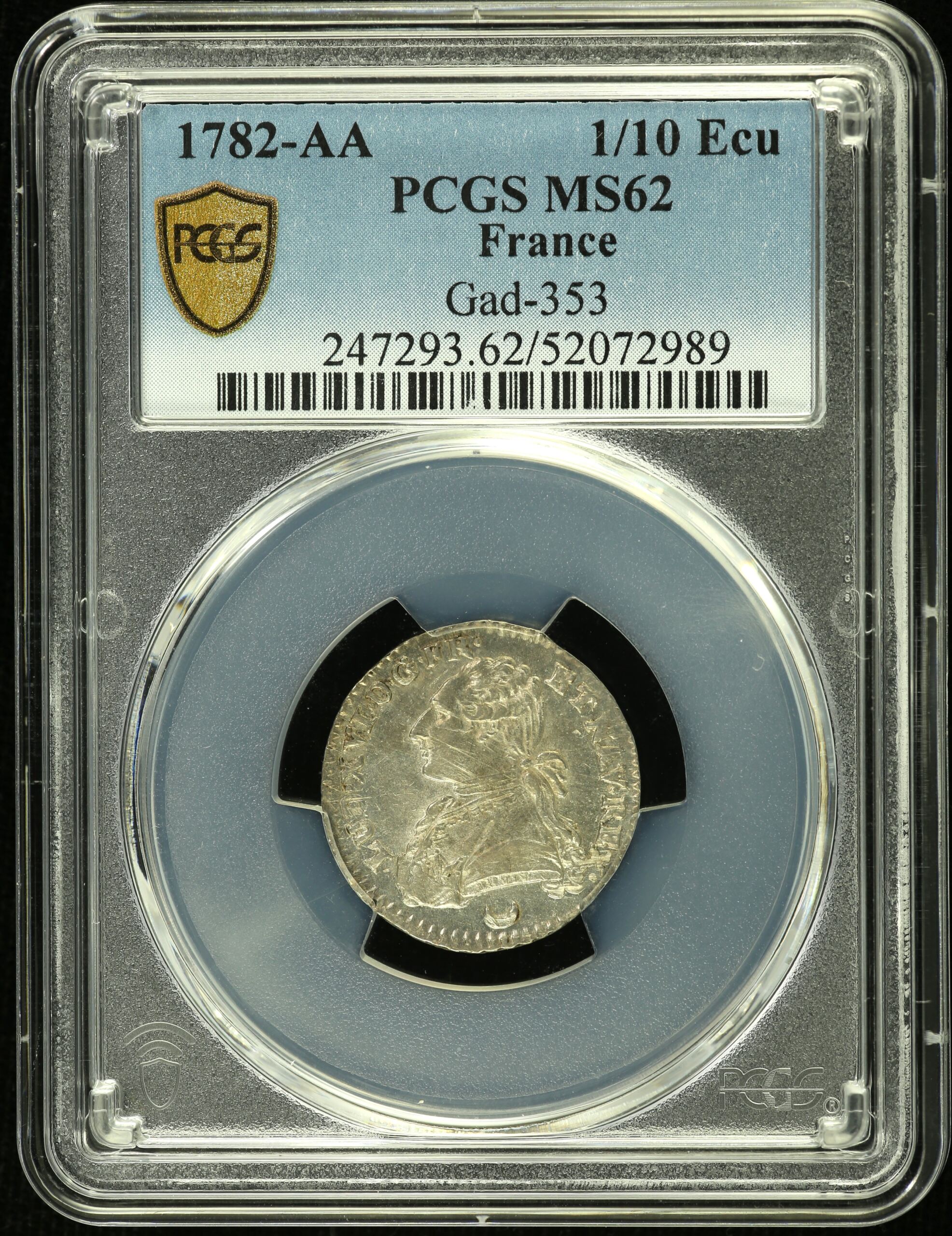 France 1/10 Ecu 1782 AA Gad-353 PCGS MS62 0152569