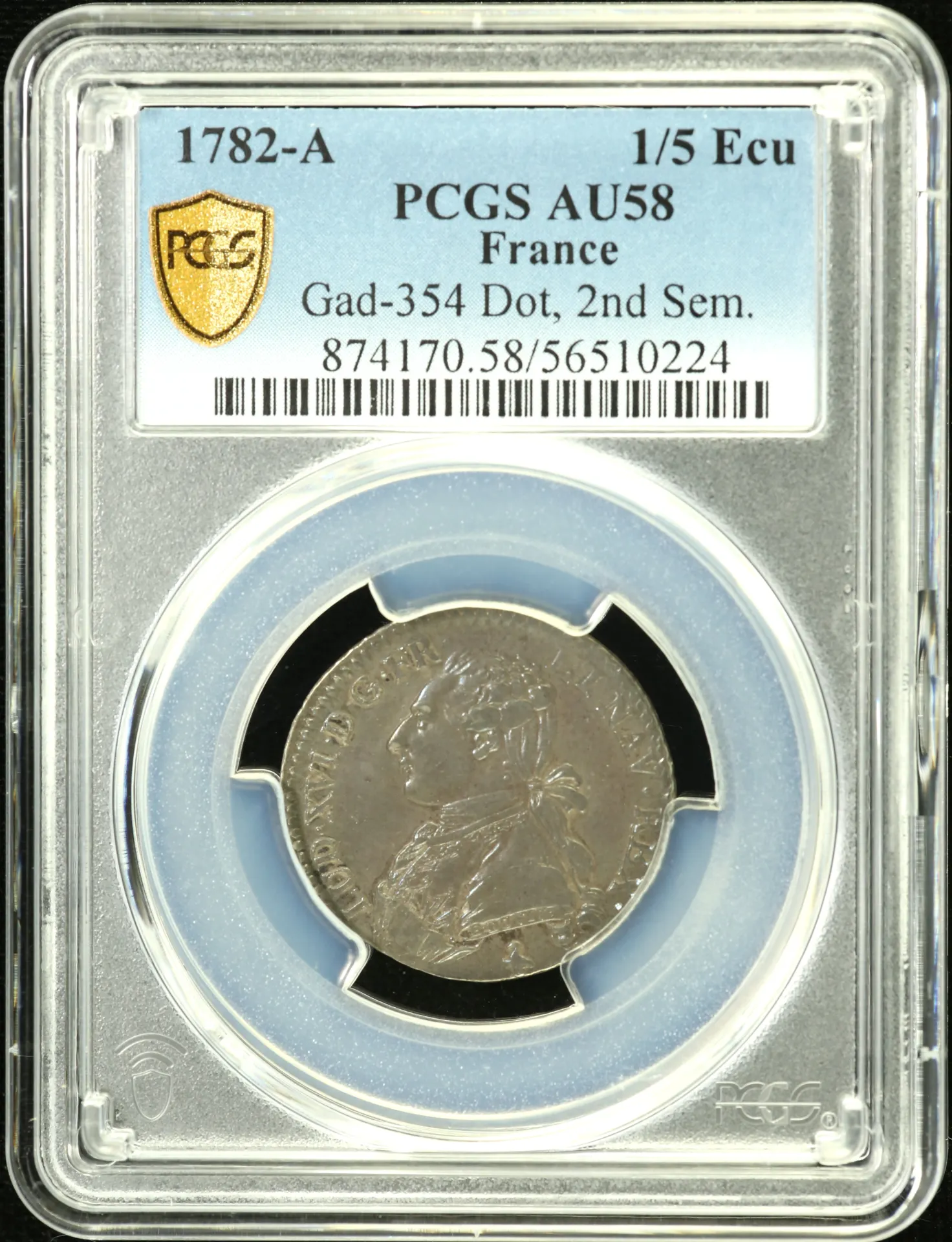 France 1/5 Ecu 1782 A PCGS AU58 GAD-354 0152563