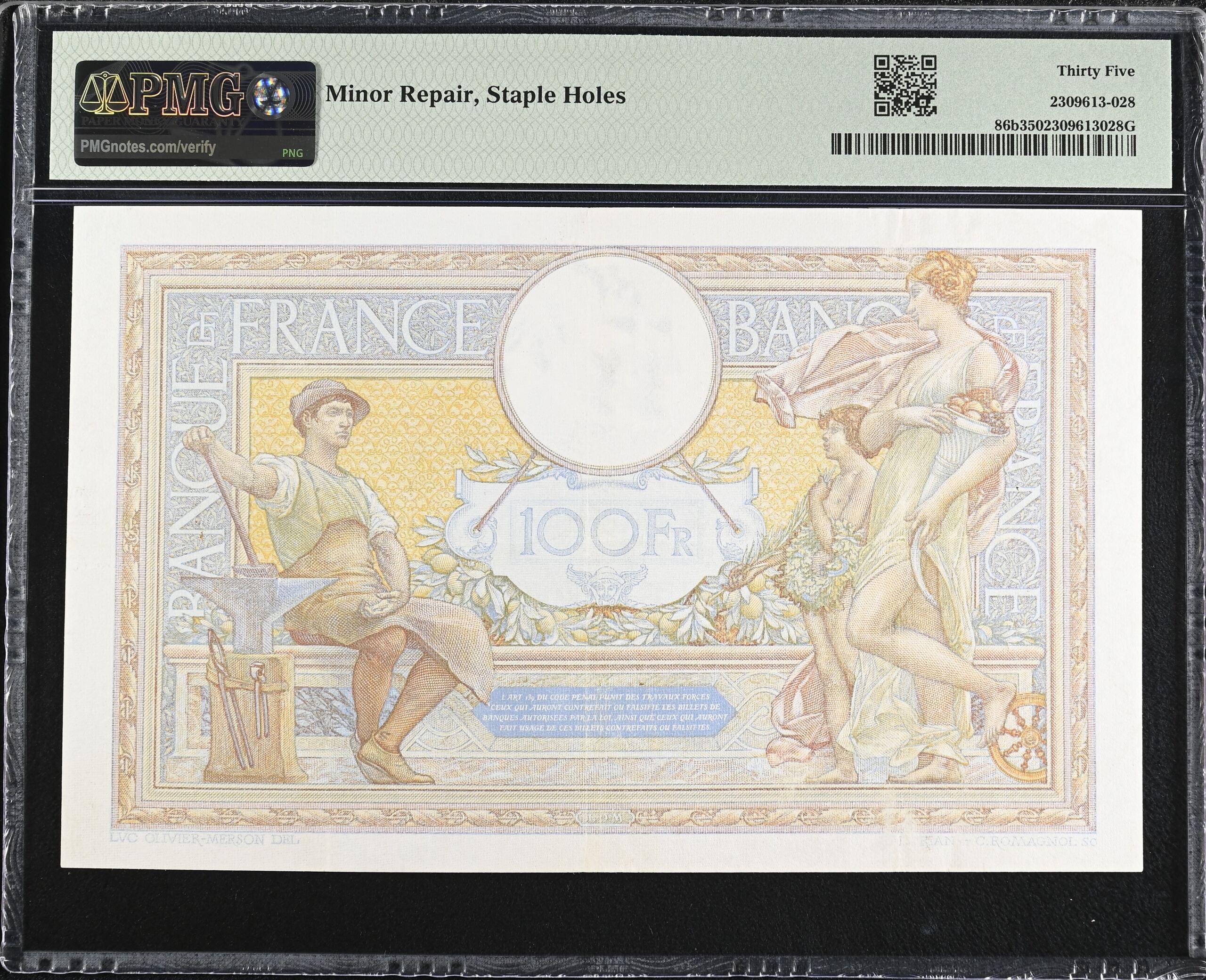 France 100 Francs 1938 PMG Ch VF35 Pick #86b 0150433