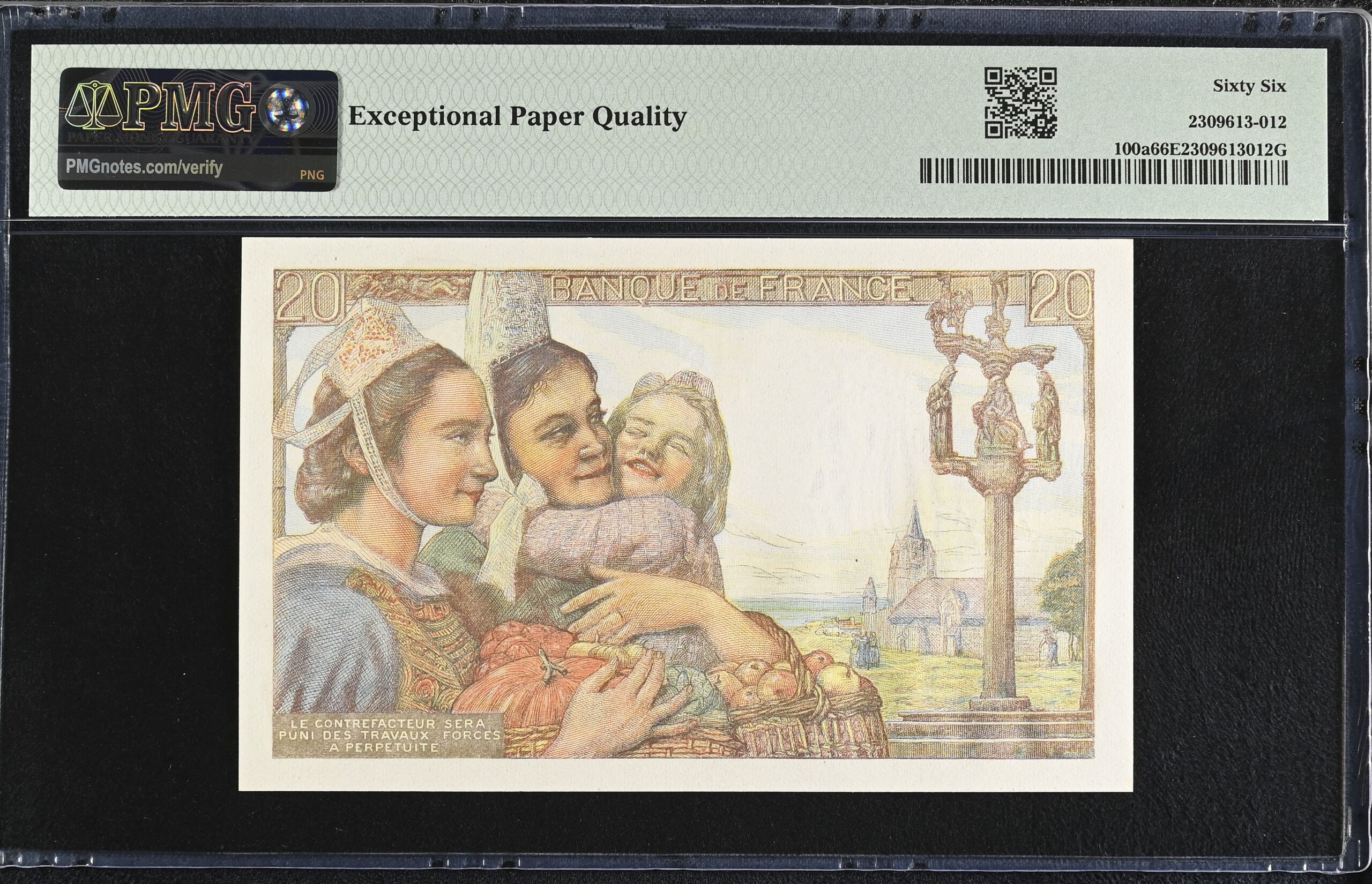 France 20 Francs 1943 Pick #100a PMG Gem UNC66 EPQ 0154726