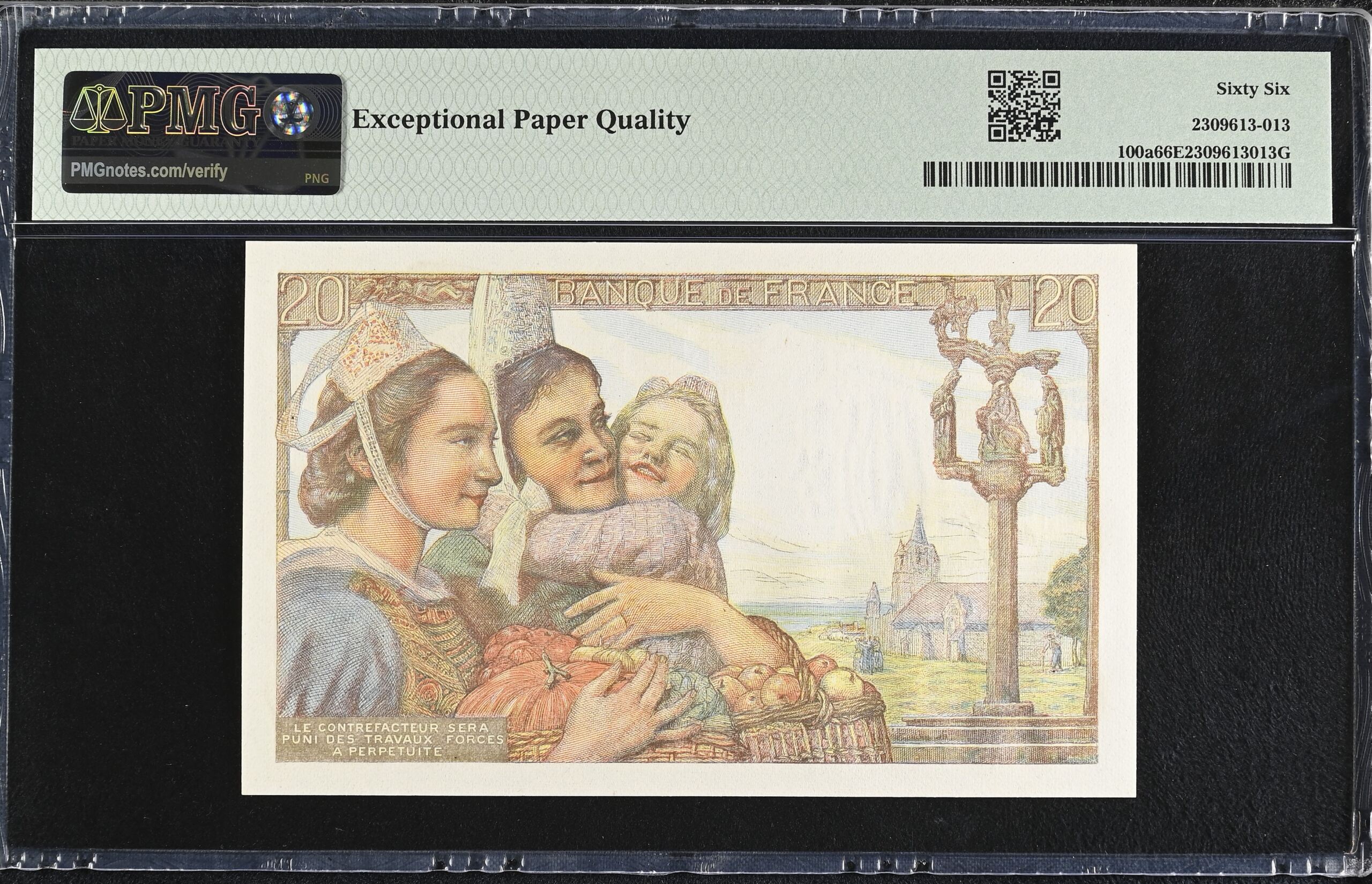 France 20 Francs 1943 Pick #100a PMG Gem UNC66 EPQ 0154727