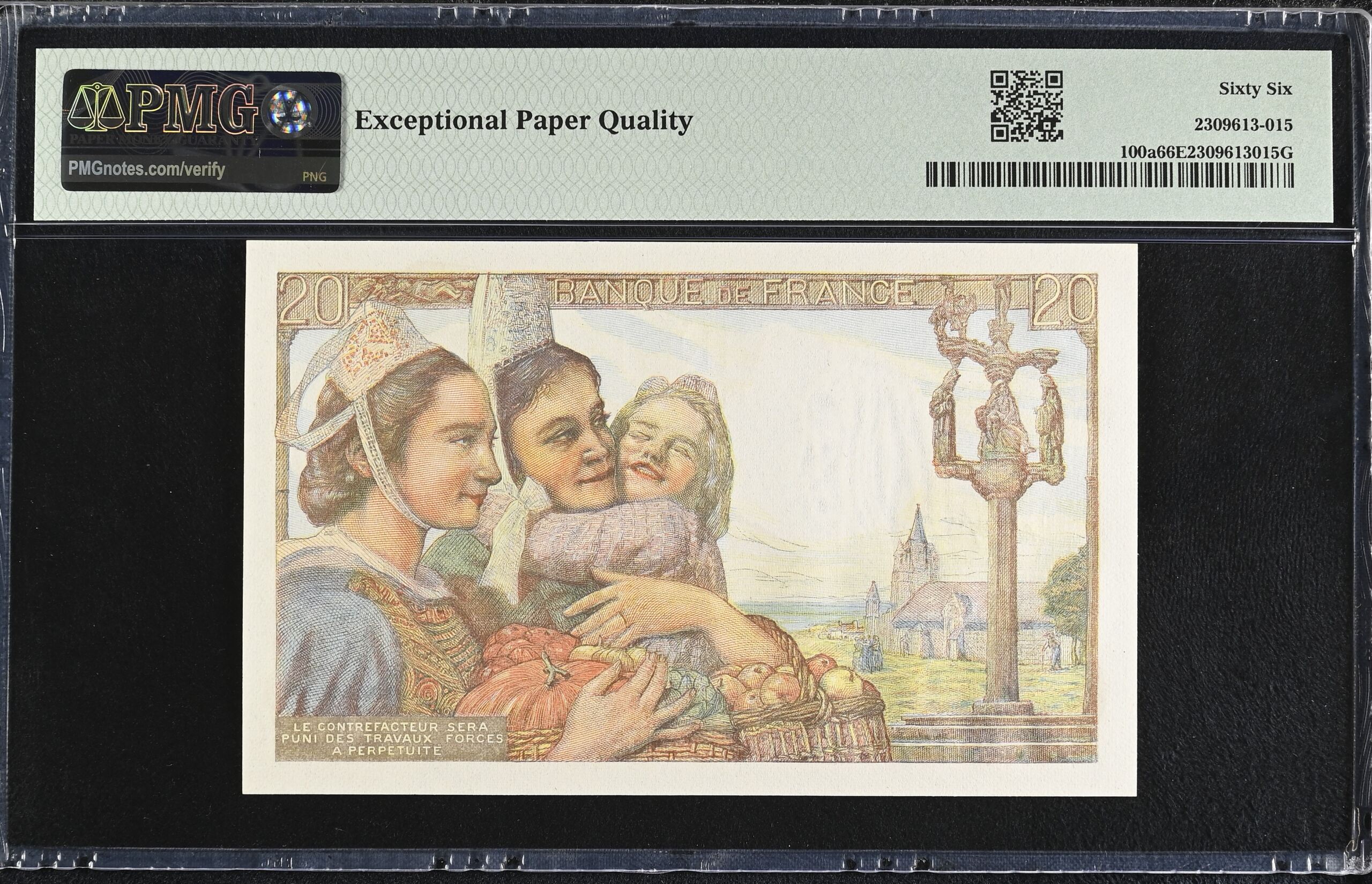 France 20 Francs 1943 Pick #100a PMG Gem UNC66 EPQ 0154729