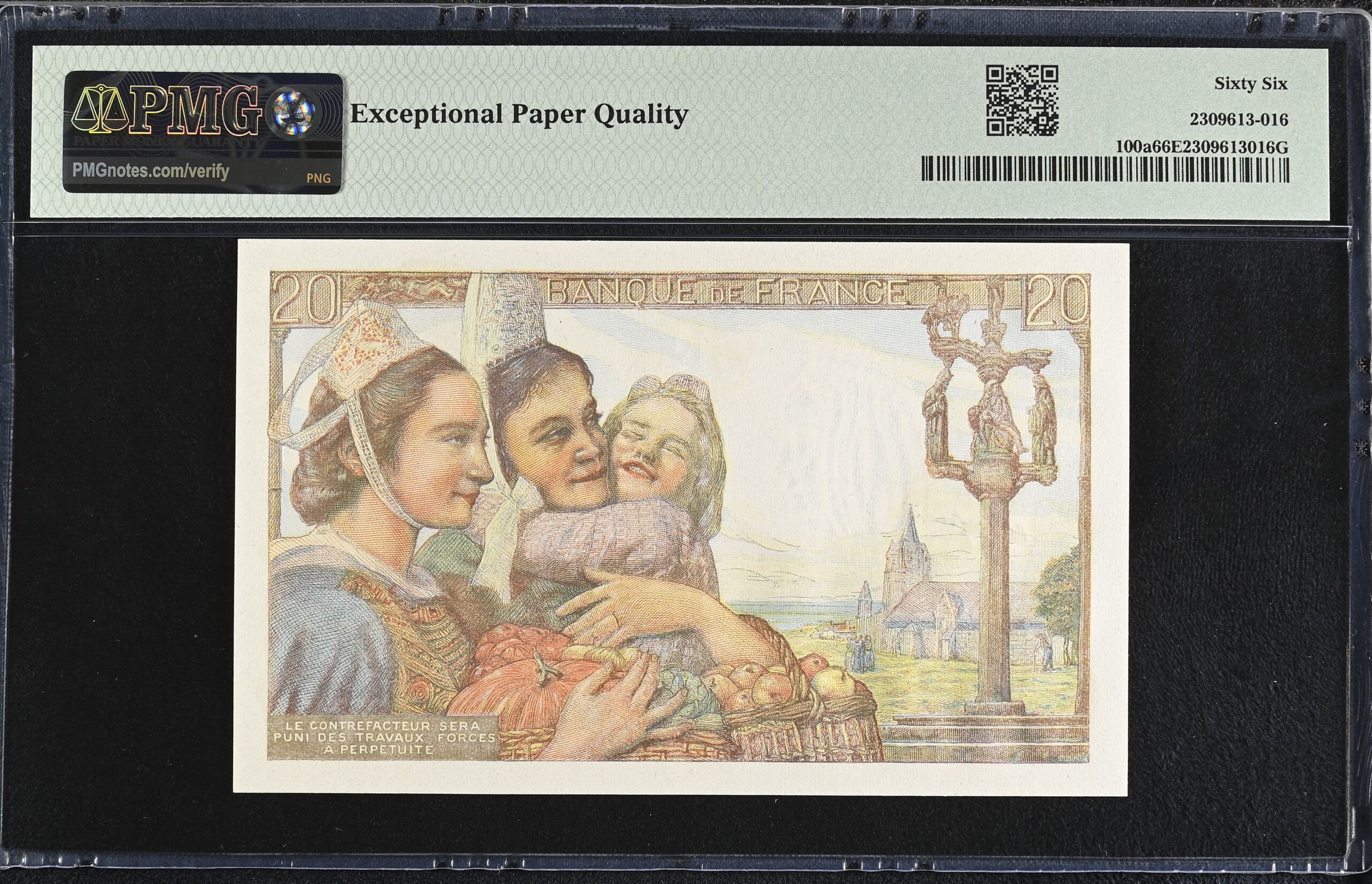 France 20 Francs 1943 Pick #100a PMG Gem UNC66 EPQ 0154730