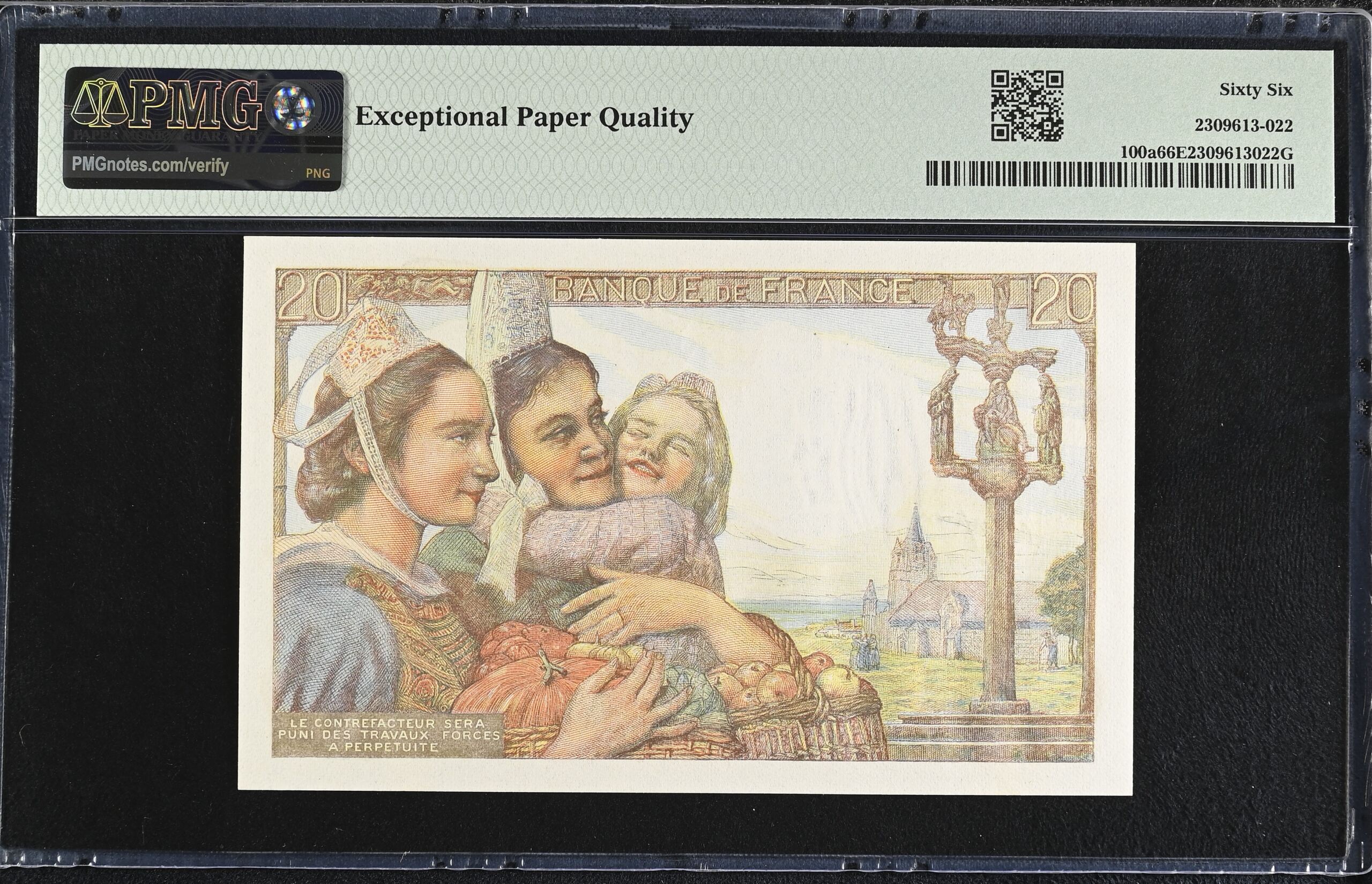 France 20 Francs 1943 Pick #100a PMG Gem UNC66 EPQ 0154736