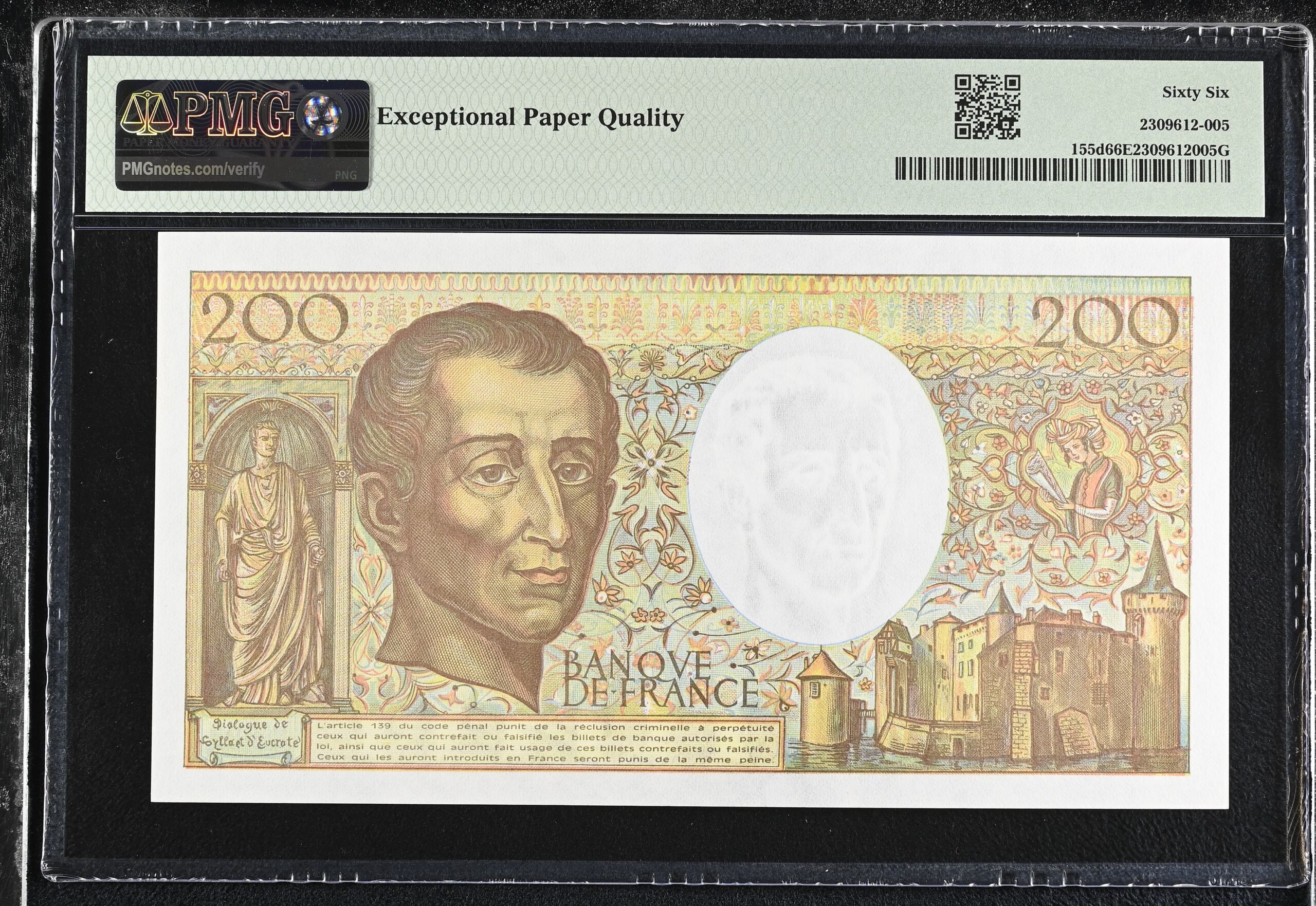 France 200 Francs 1990-91 PMG Gem UNC66 EPQ Pick #155d 0150450