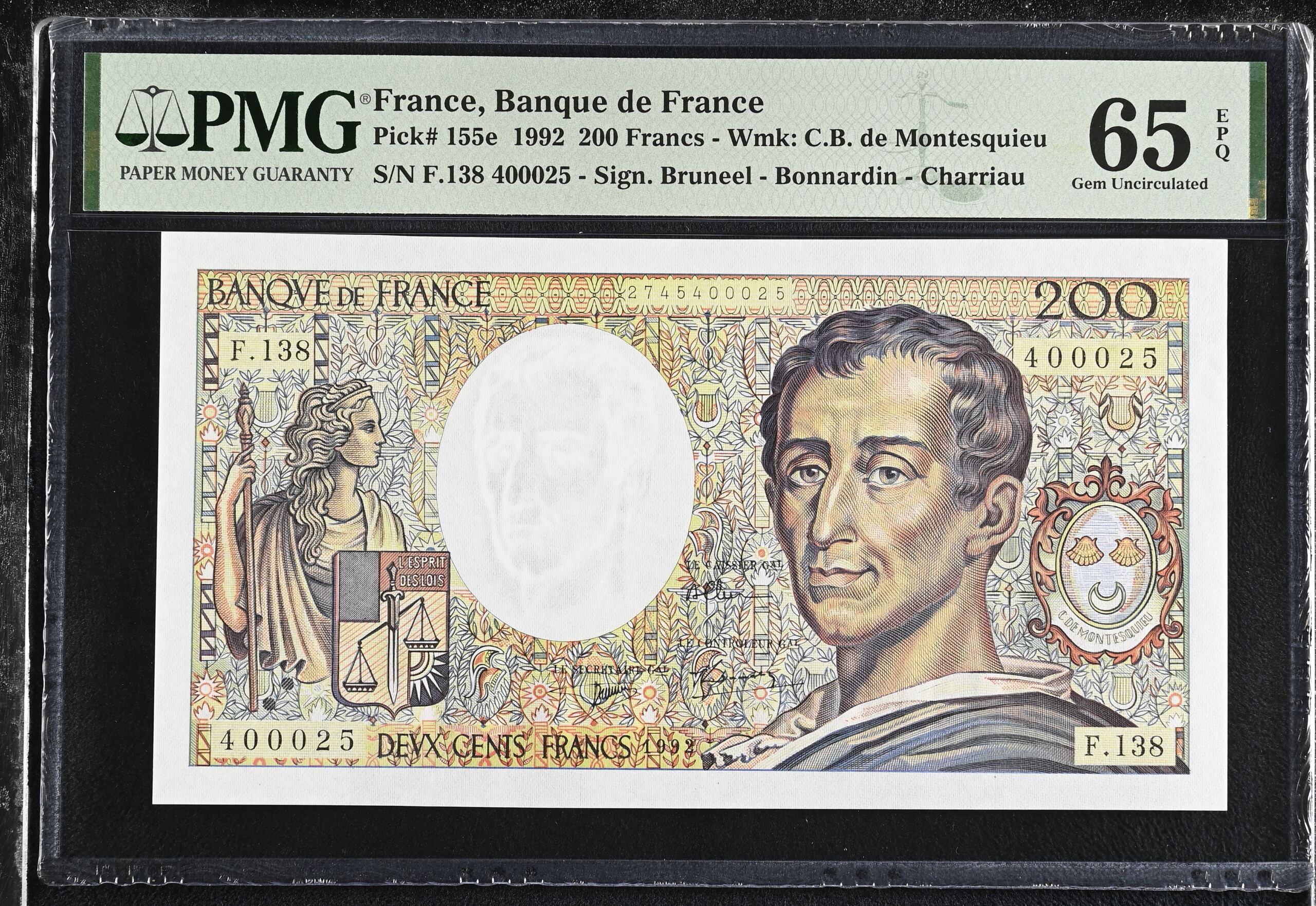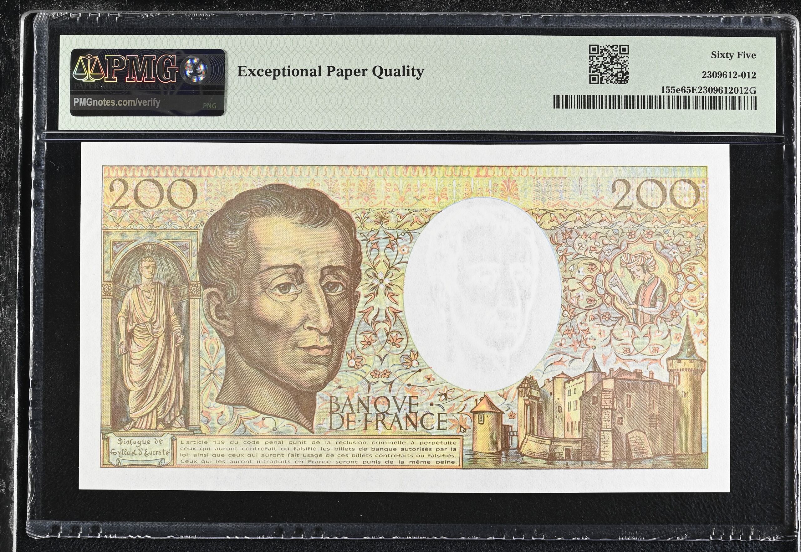 France 200 Francs 1992 Pick #155e PMG Gem UNC65 EPQ 0153835