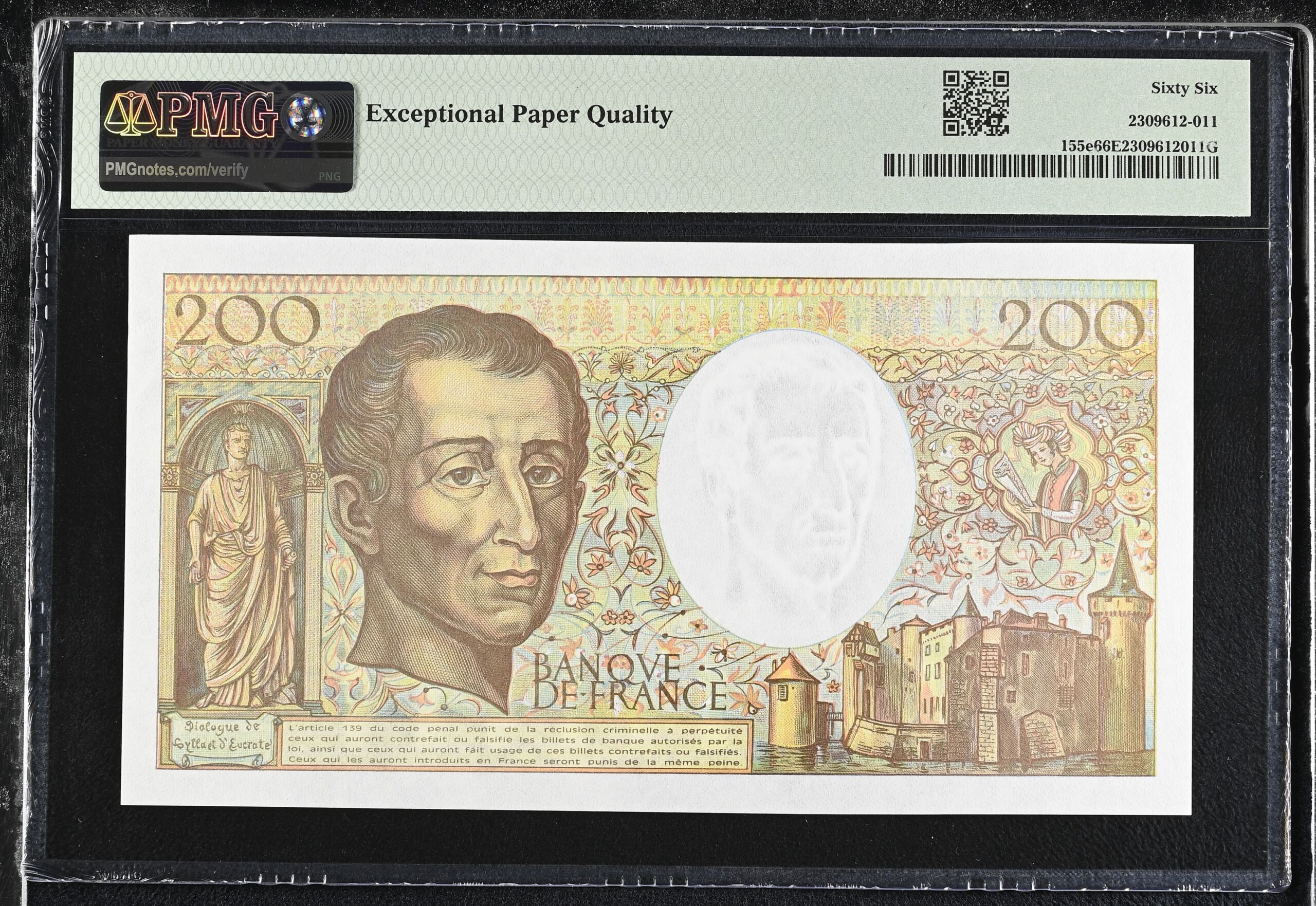 France 200 Francs 1992 Pick #155e PMG Gem UNC66 EPQ 0153834