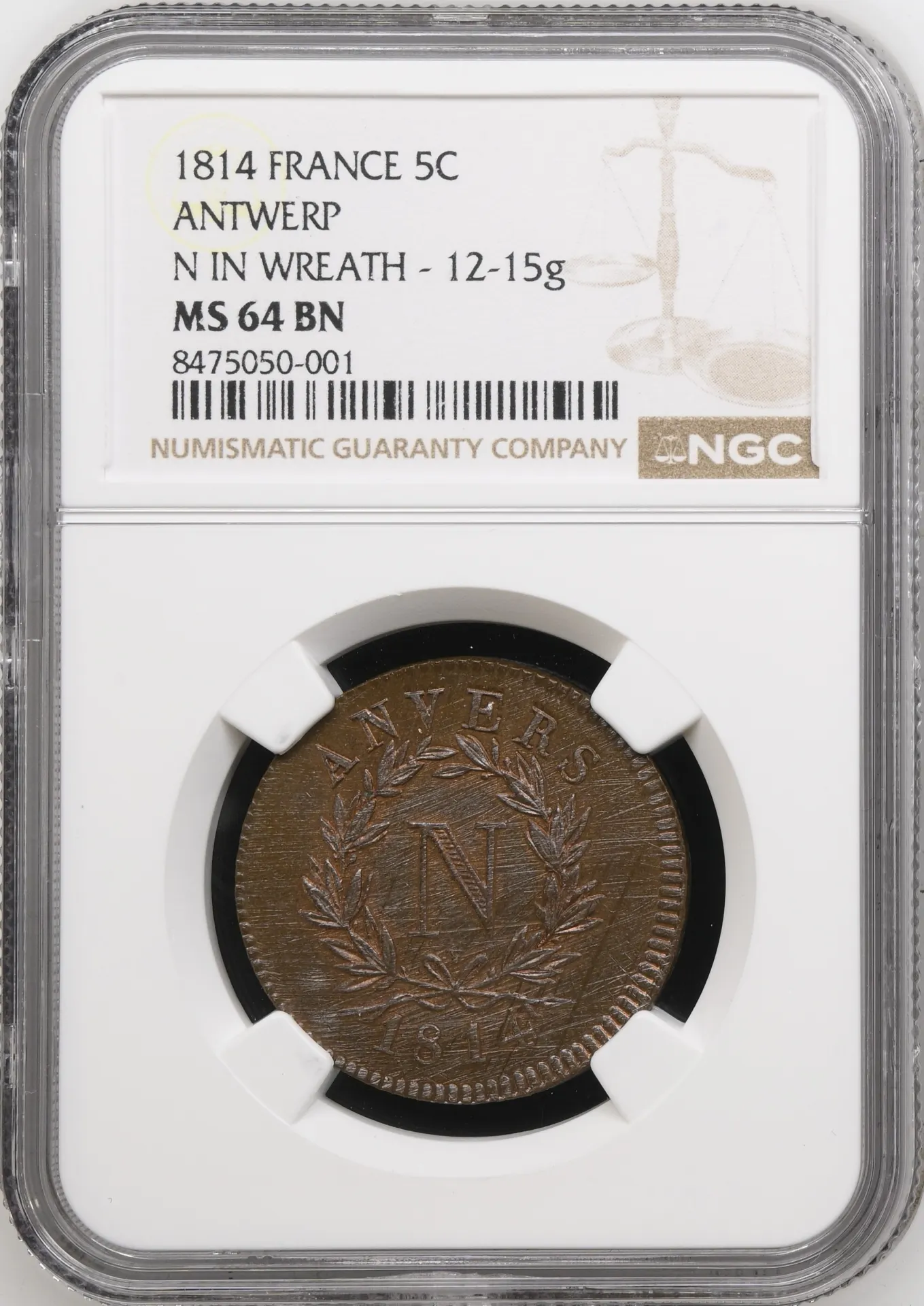 France 5 Cent 1814 Antwerp NGC MS64BN 0158008