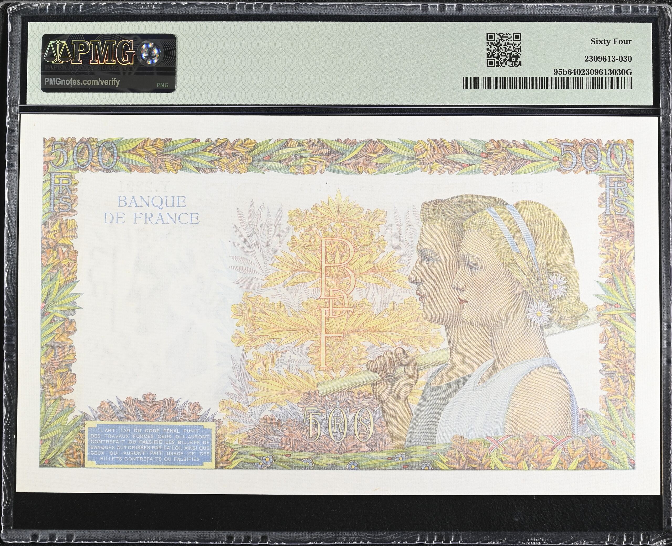 France 500 Francs 1941 PMG Ch UNC64 Pick #95b 0150436