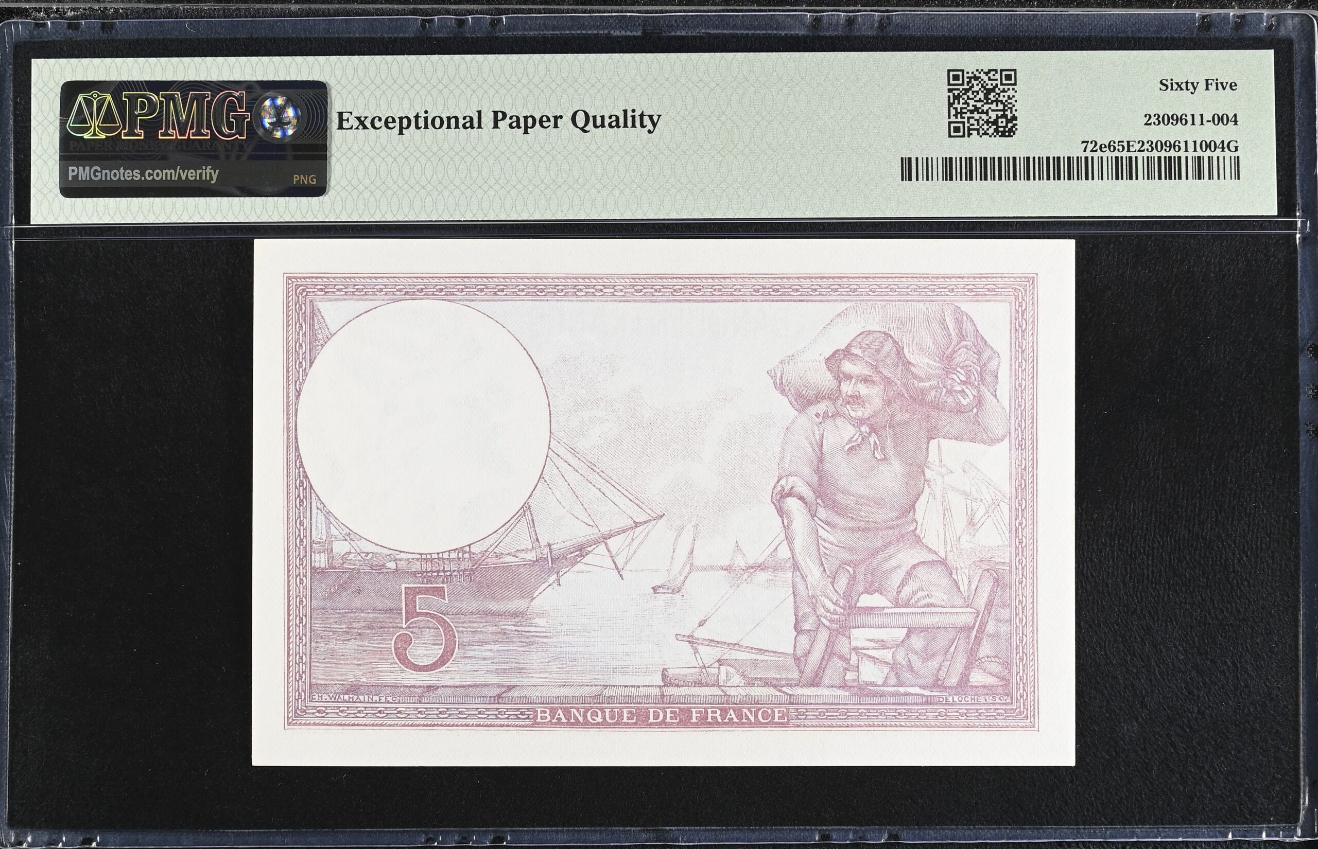 France 5 Francs 1933 PMG Gem UNC65 EPQ Pick #72e 0150420