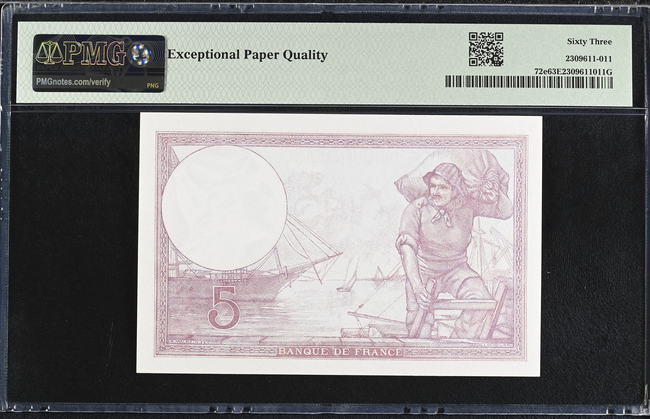 France 5 Francs 1933 PMG Ch UNC63 EPQ Pick #72e 0150421