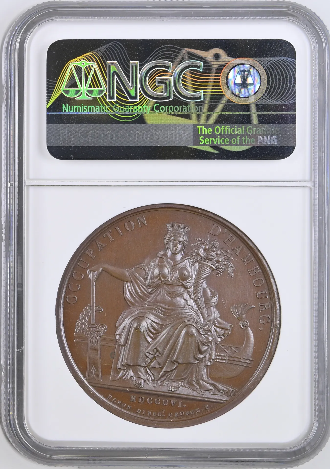 France Occupation of Hamburg Bronze Medal 1806 Bramsen-549 NGC MS65BN 0156301