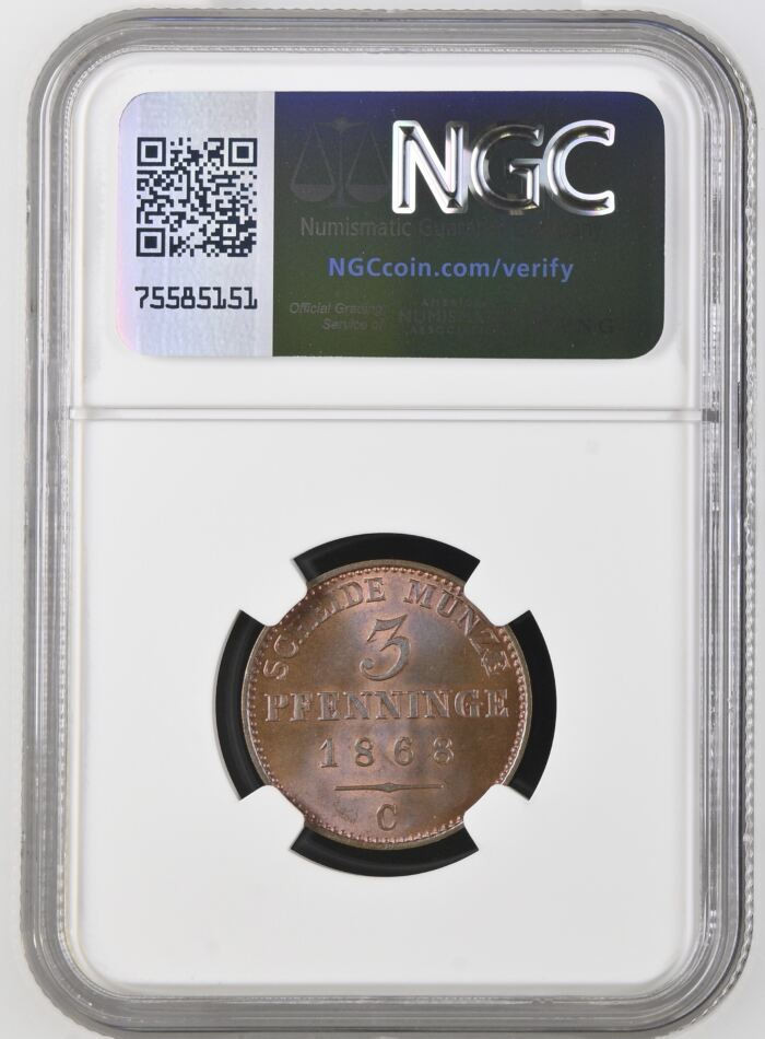 Germany 3 Pfenning 1868 C Prussia NGC MS65BN 0144594