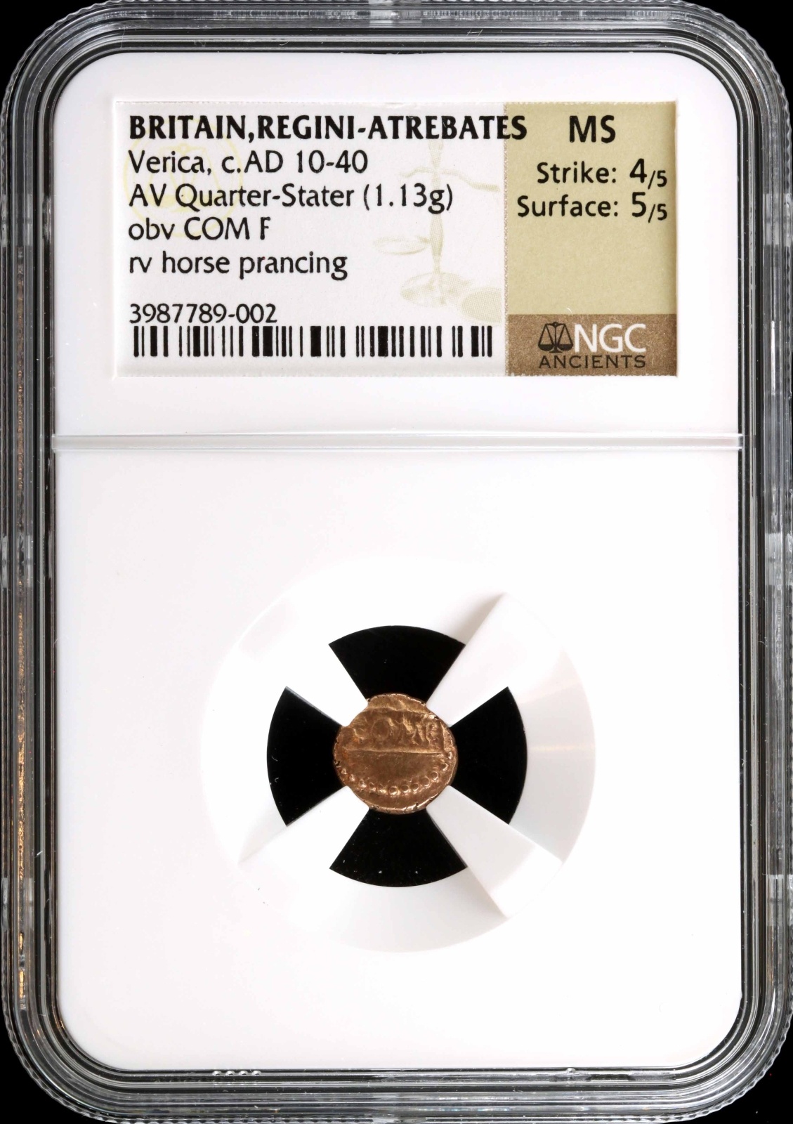 Celtic, Regini-Atrebates Verica c.10-40 AD AV 1/4 Stater NGC MS 29466