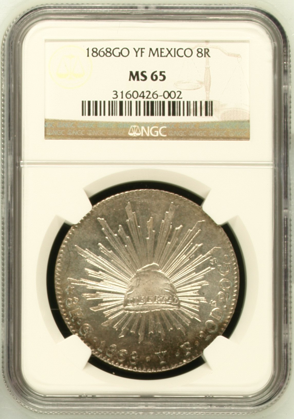 Guanajuato 8 Reales 1868 Go YF NGC MS65 0152409