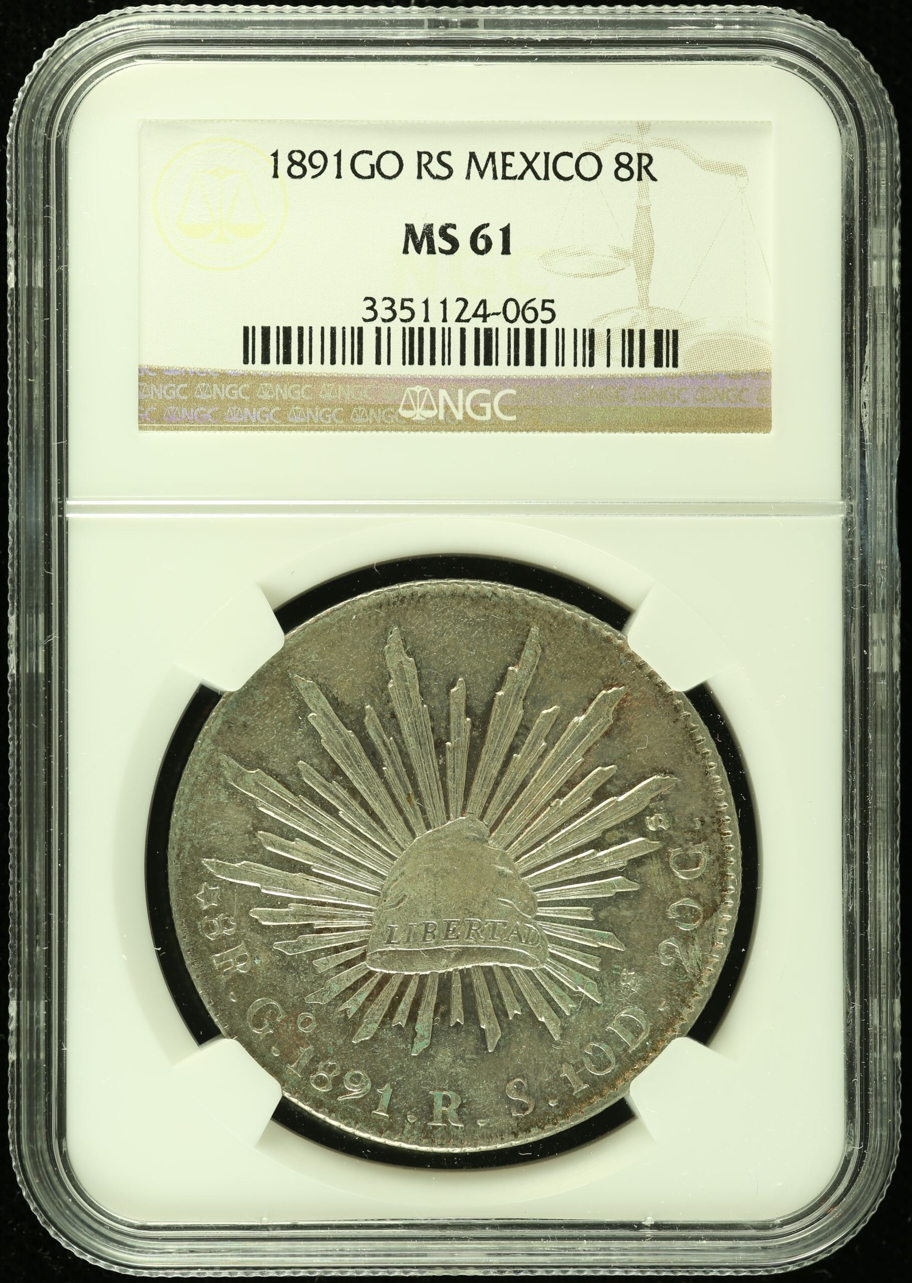 Guanajuato 8 Reales 1891 Go RS NGC MS61 0113315