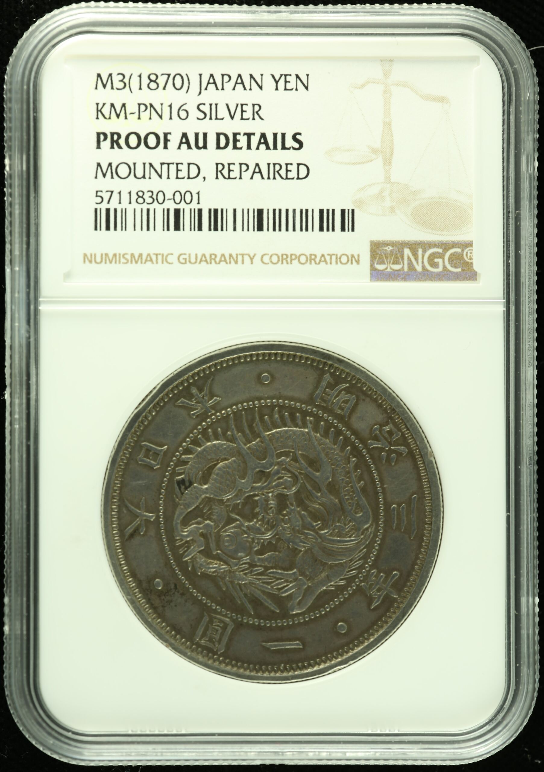Japan Pattern Yen M3(1870) NGC Proof AU Details 0108062