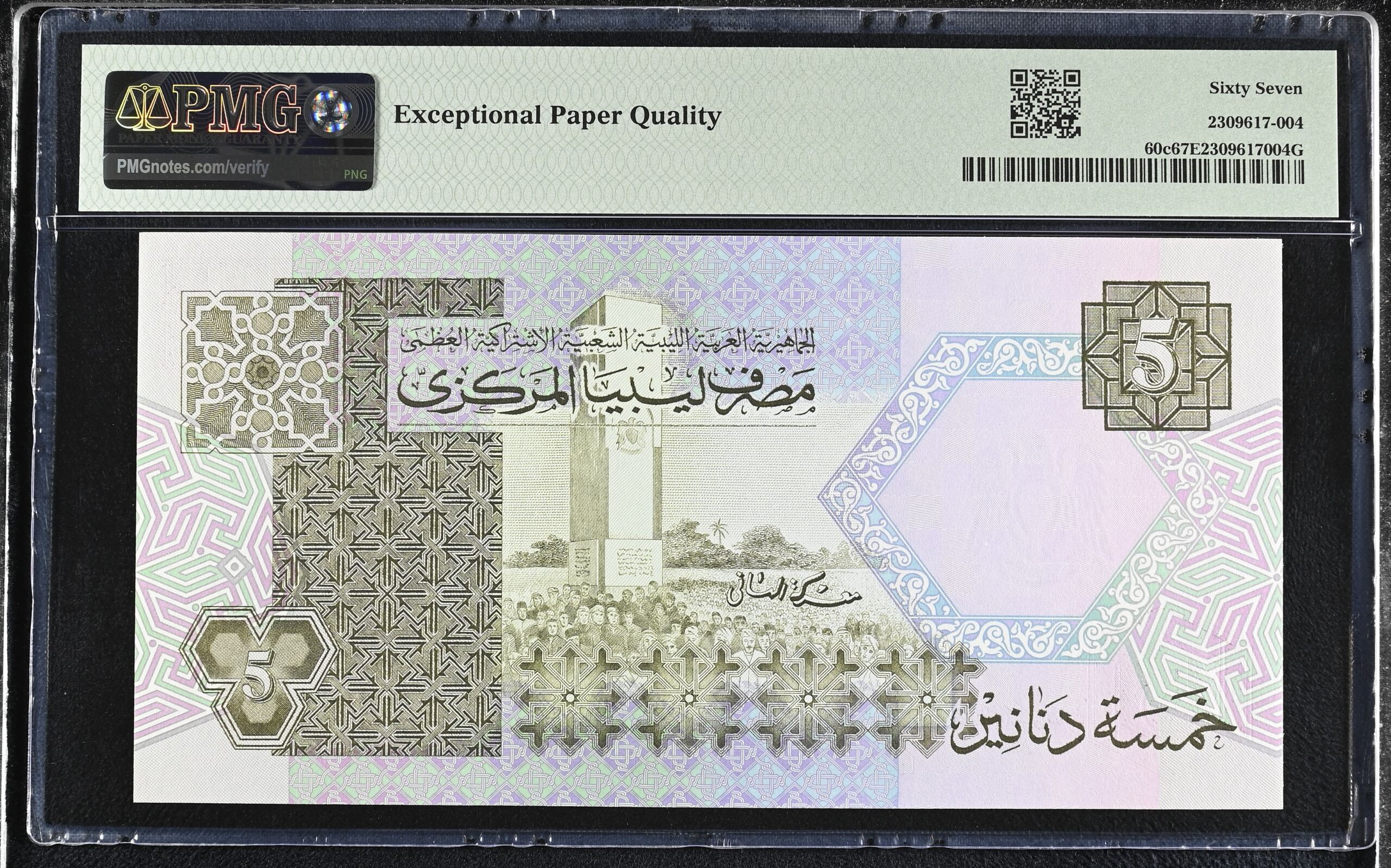 Libya 5 Dinars ND Pick# 60c PMG Superb Gem UNC67 EPQ 0153167
