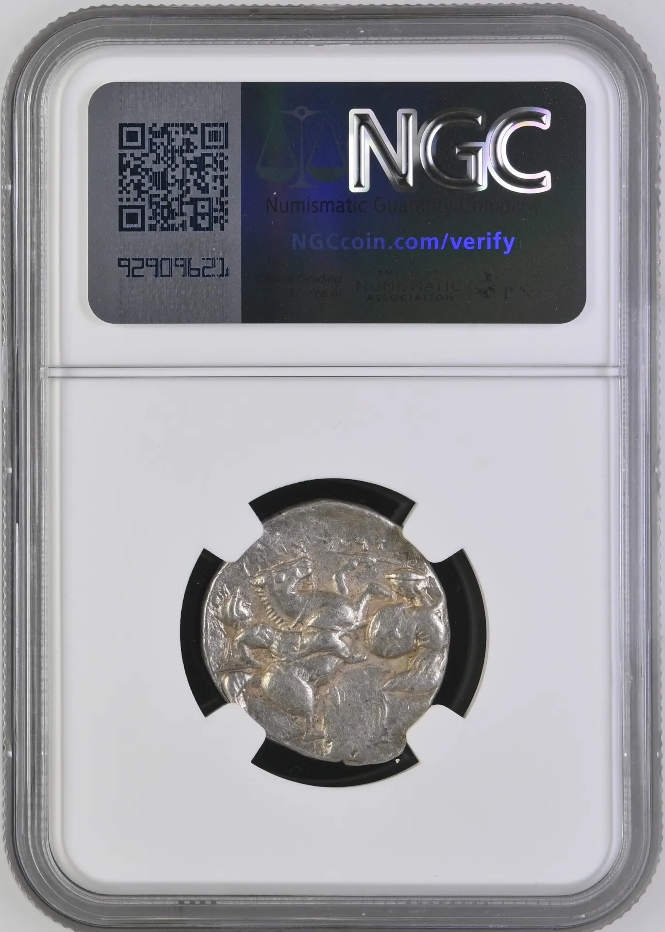 City: TarasDate: c.302-280 BCDenom: DidrachmMetal: ARWeight: (7.92g)Grade: NGC AUGrading Strike: 4/5Grading Surface: 4/5 -