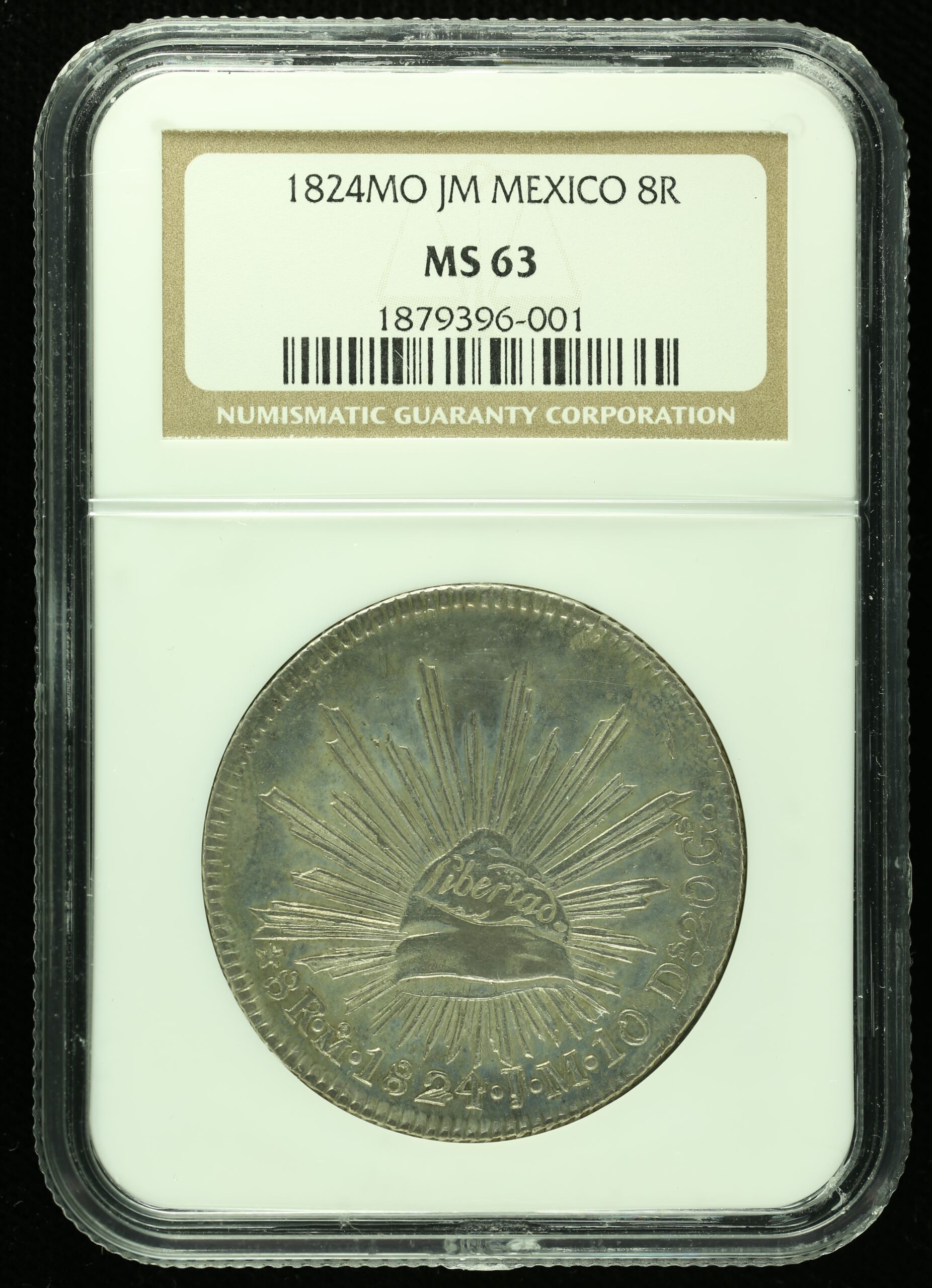 Mexico City 8 Reales 1824 Mo JM NGC MS63 k_35455
